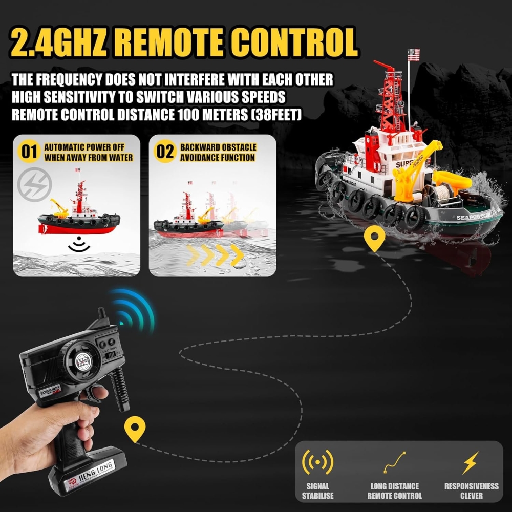 - частота управления обновленная 2.4 Ghz позволит управлять судном на расстояние до 100 метров