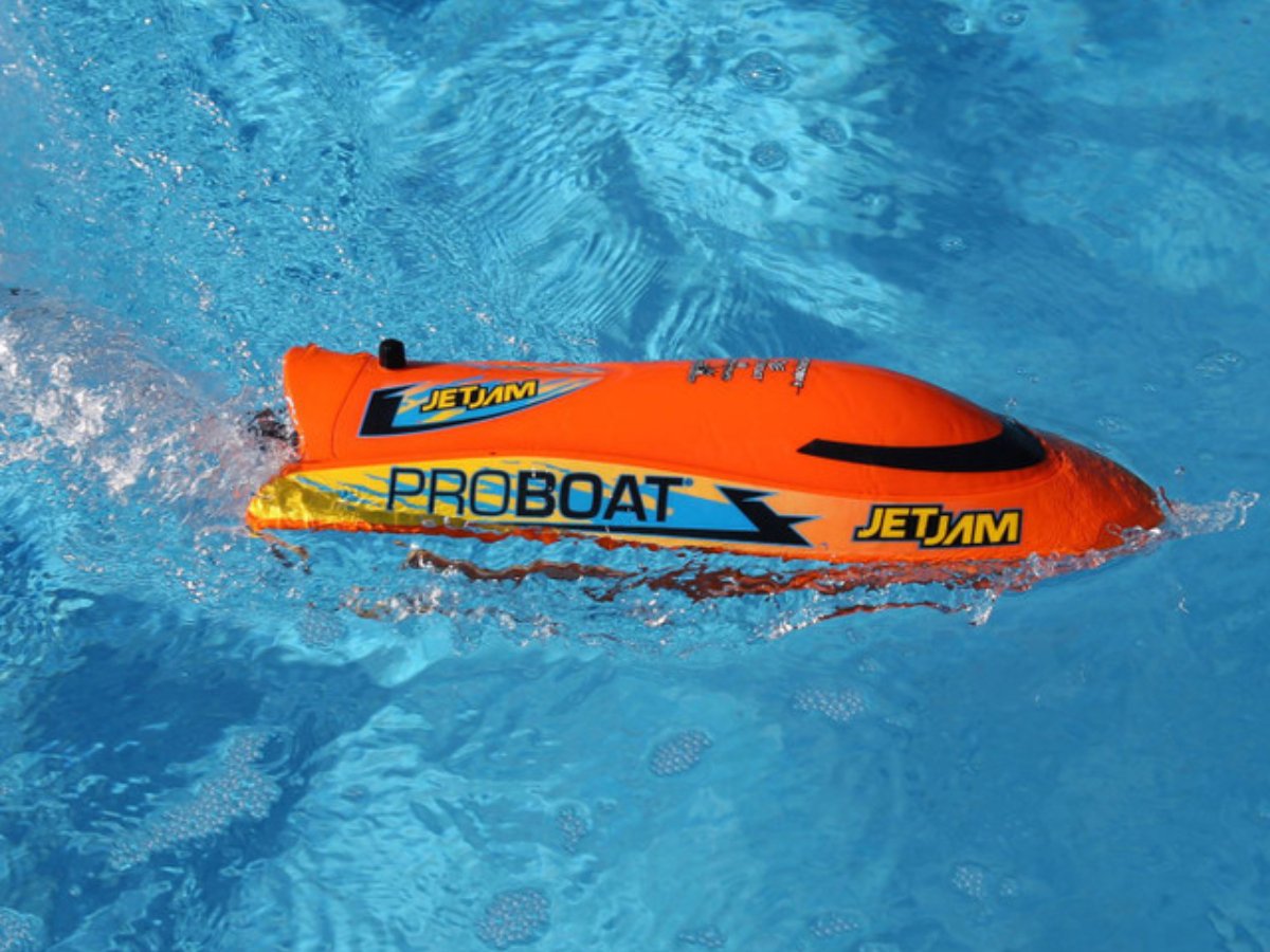 Неопрокидывающийся катер ProBoat Jet Jam — это одна из лучших моделей на рынке. Катер идеально подходит для отдыха у озера или бассейна. Джет Джем достаточно 8 см. Струйный насос и закрытый винт делают модель безопасной. Jet Jam оснащен резиновым бампером, что может привести к поломке корпуса и повреждению бассейна. В комплект входит даже съемная скоба, чтобы вы могли поиграть в водный футбол с друзьями. Просто шарик для пинг-понга или любой другой не тонирующий шарик.