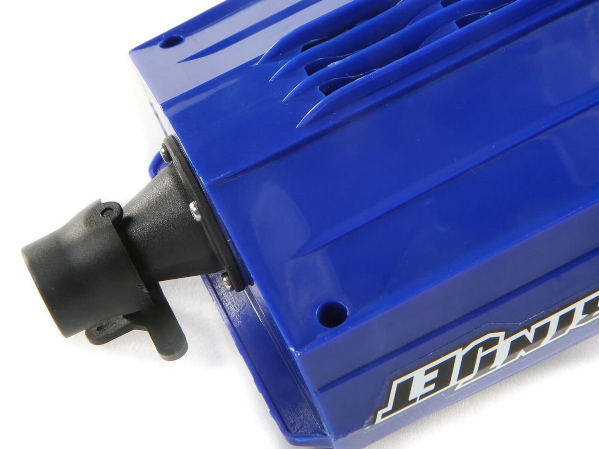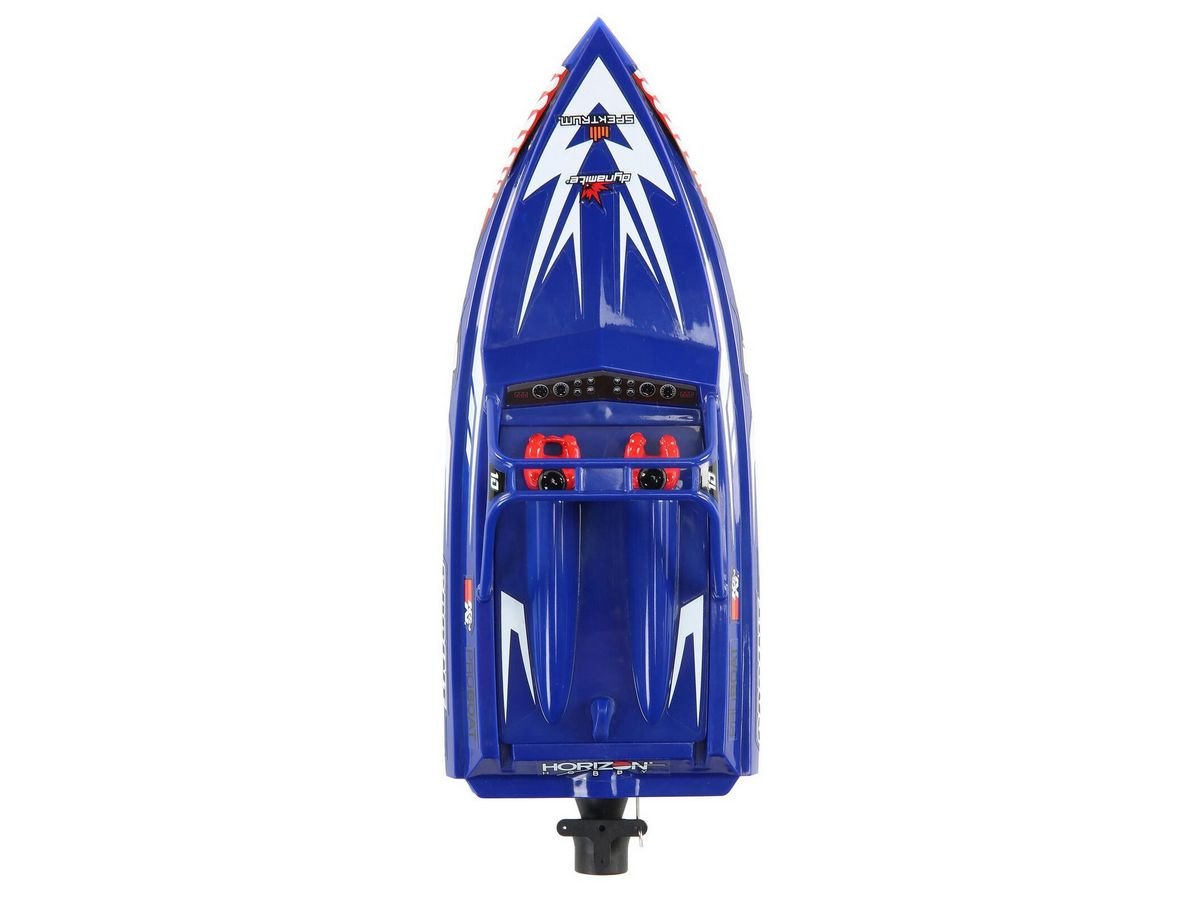Небольшой радиоуправляемый катер ProBoat Sprintjet 9" длиной около 23 см. Оснащён водомётным электродвигателем. Если катер перевернулся в воде, он сам перевернется обратно в нормальное положение.