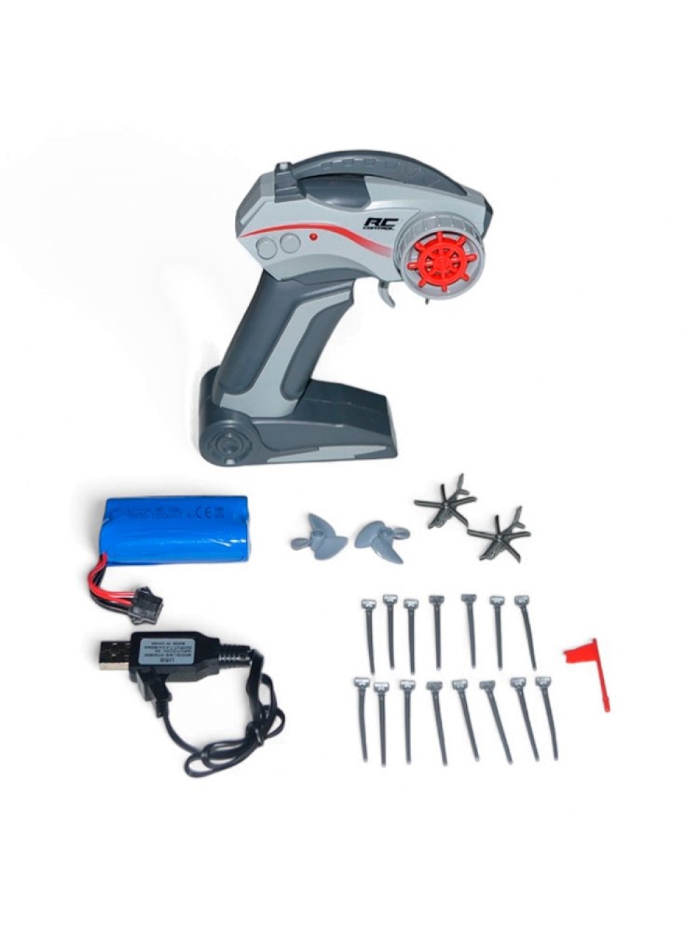 Управляется с помощью пульта дистанционного управления, обеспечивающего полный контроль над движением модели. Время работы от одного заряда составляет до 15 минут, что позволяет вдоволь насладиться плаванием. Радиус действия пульта достигает 50 метров, предоставляя достаточно свободы для маневров. Корабль питается от встроенного аккумулятора, что упрощает его использование и избавляет от необходимости постоянно покупать батарейки.
