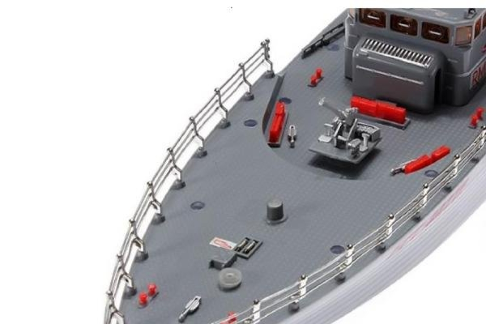 Heng Tai Destroyer 27Mhz 2877F непременно станет украшением коллекции любого фаната военных кораблей и радиоуправляемых моделей. Катер является высокодетализированной копией британского торпедного корабля в масштабе 1:115 и поражает качеством проработки. Отлично покажет себя данная модель и на воде. Heng Tai Destroyer 27Mhz 2877F оснащен двумя мощными коллекторными моторами и двумя винтами, обеспечивающими кораблю стабильное и устойчивое плавание. Полного заряда аккумулятора хватит на 15-20 минут запуска без подзарядки. Простое управление при помощи удобного пульта также не вызовет проблем даже у новичков. Радиус действия пульта составляет более 30 м, чего более чем достаточно для увлекательного запуска.