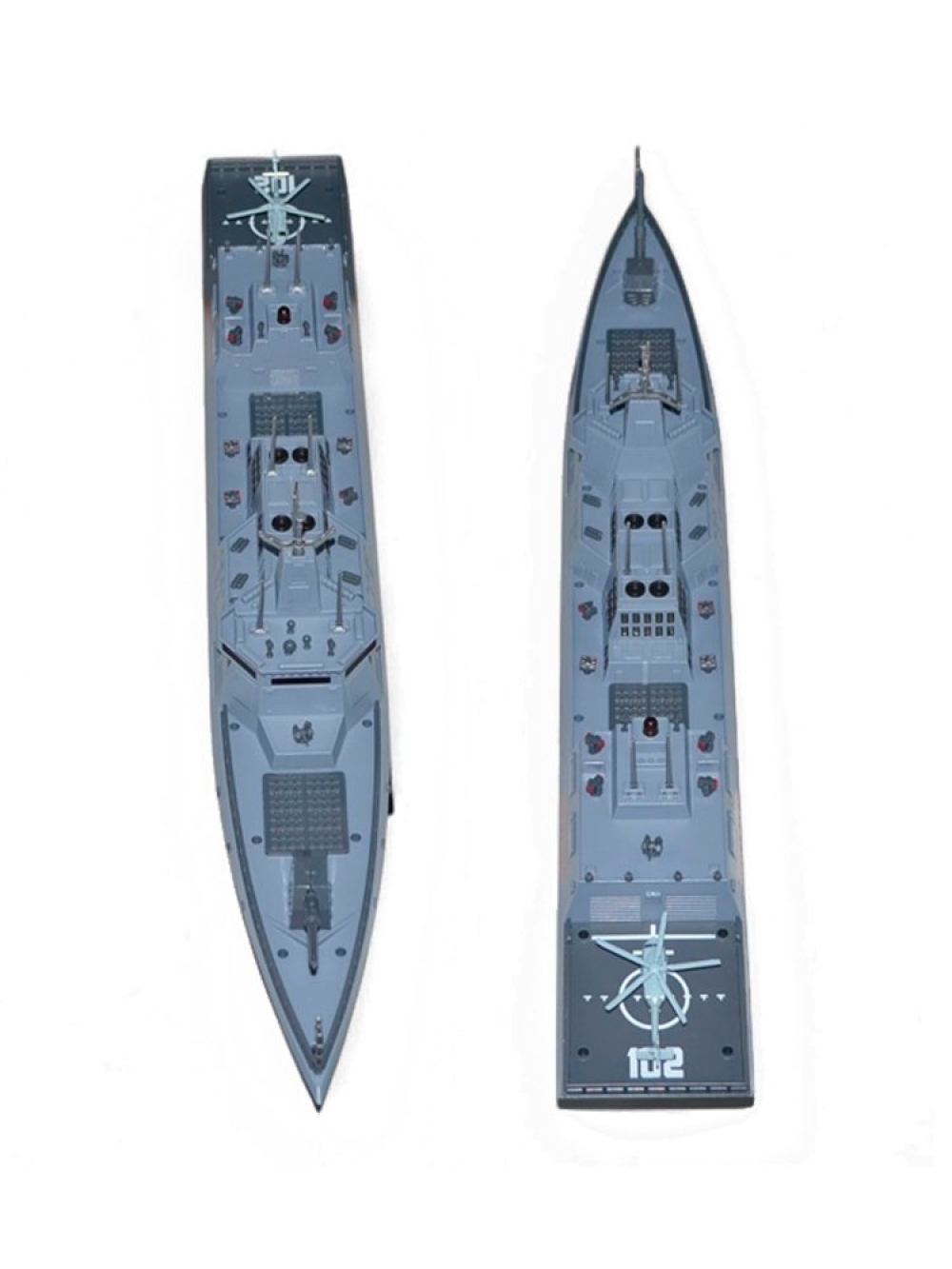 Основными особенностями являются: четкая детализация всего корпуса, высокая скорость и маневренность. На борту корабля расположились вертолет и пушка. Такая модель обязательно понравиться коллекционерам военной техники и просто любителям реалистичных радиоуправляемых моделей. Модель сделана из качественного пластика, поэтому она долго прослужит не только в качестве экземпляра коллекции, но и в активном использовании на воде!