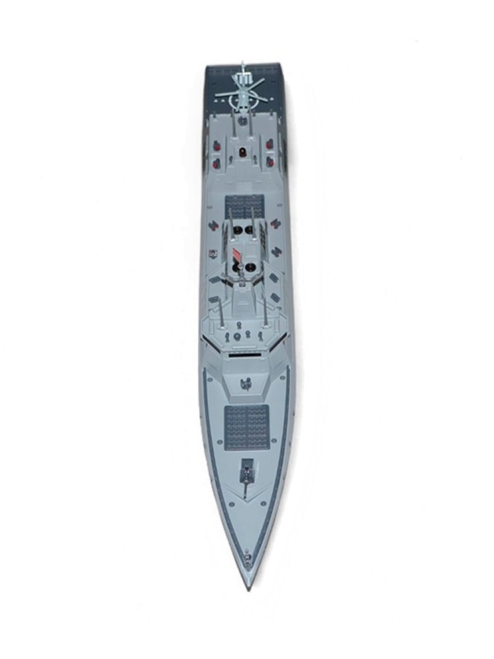 Основными особенностями являются: четкая детализация всего корпуса, высокая скорость и маневренность. На борту корабля расположились вертолет и пушка. Такая модель обязательно понравиться коллекционерам военной техники и просто любителям реалистичных радиоуправляемых моделей. Модель сделана из качественного пластика, поэтому она долго прослужит не только в качестве экземпляра коллекции, но и в активном использовании на воде!