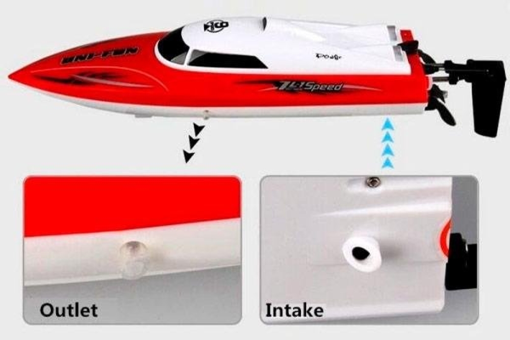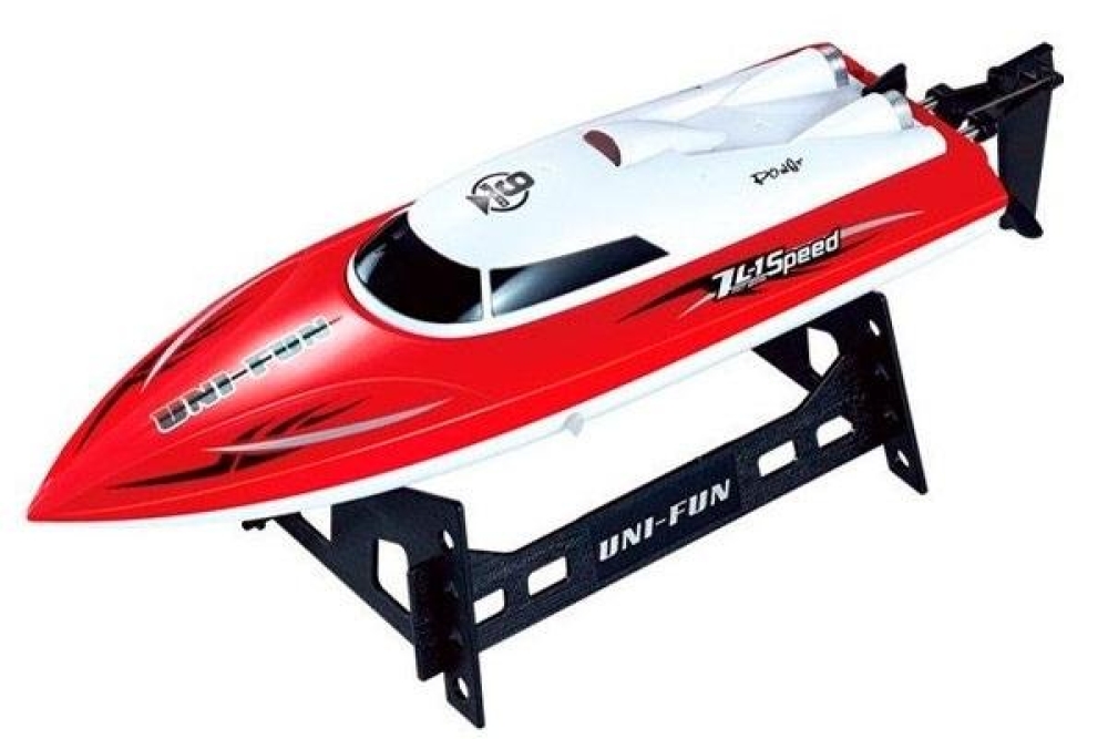 Недорогой катер на радиоуправлении отлично подойдет для взрослых и детей как первая модель пульте. Оснащен функцией возврата и контроля воды. Полностью готов к заездам, комплект включает в себя: