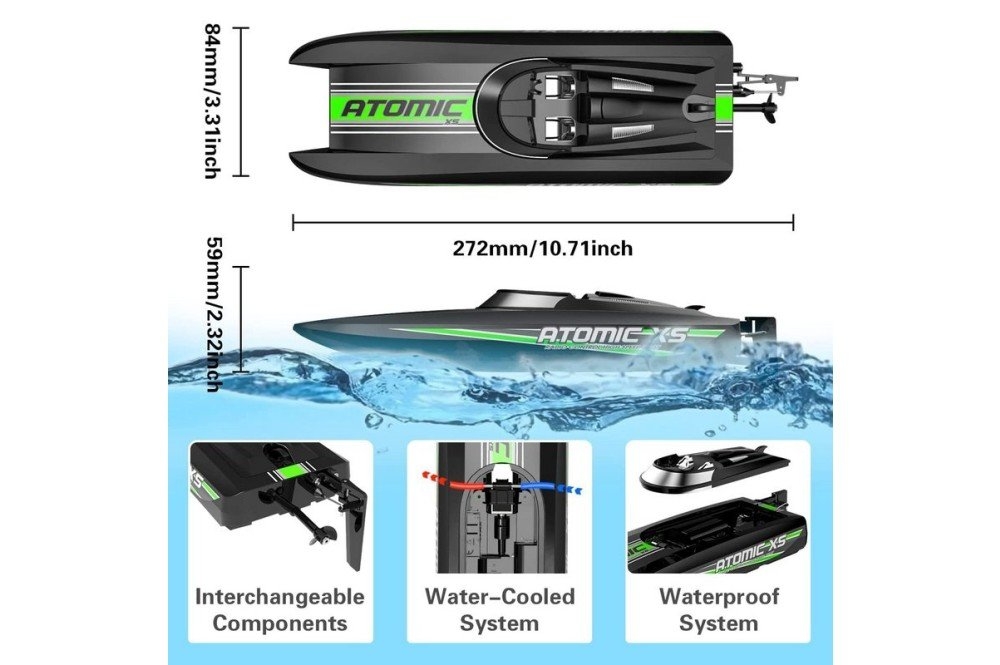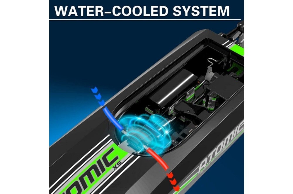 Встроенная система водяного охлаждения помогает поддерживать температуру катера в течение более длительного времени работы, что продлевает срок службы двигателя. Катер отличается прочной конструкцией корпуса с защитой от переворачивания и устойчивостью к растрескиванию.