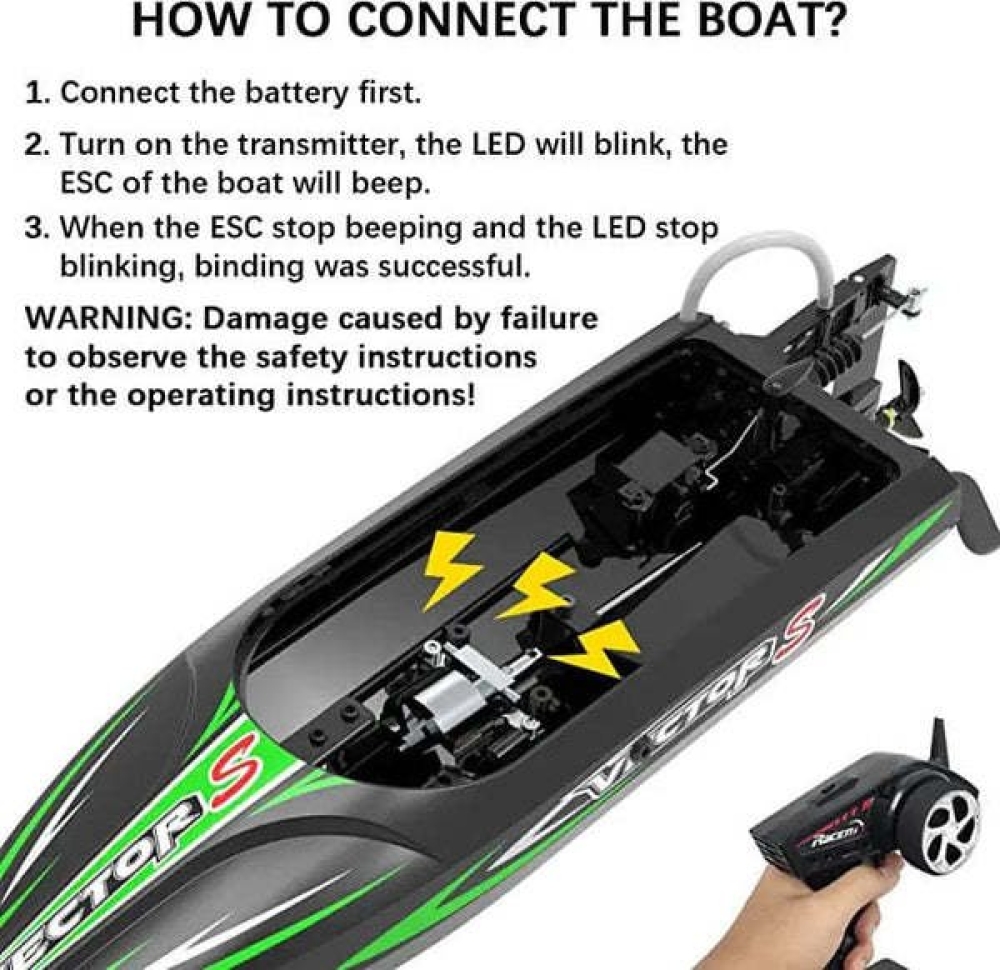 Защита от низкого напряжения будет замедлять катер при низком заряде батареи, чтобы вы смогли немедленно вернуть его обратно. Функция безопасности защитит аккумулятор от перезарядки и чрезмерной разрядки аккумулятора. Конструкция системы водяного охлаждения снижает температуру двигателя и предотвращает его перегрев.