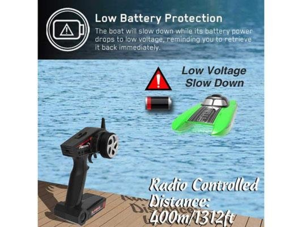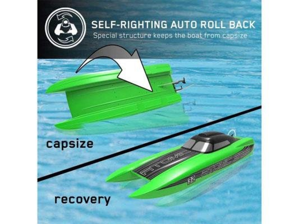 Водяное охлаждение эффективно српавляется с отводом тепла от мотора и регулятора оборотов. Функция автопереворота поможет вернуть катер в исходное положение, если во время заезда он все таки опрокинулся. При низком заряде аккумуятора вы получите звуковое оповещение, чтобы успеть вернуть катер на берег.