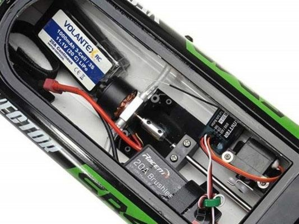 - частота управления 2.4Ghz позволит управлять катером на расстоянии до 200 метров