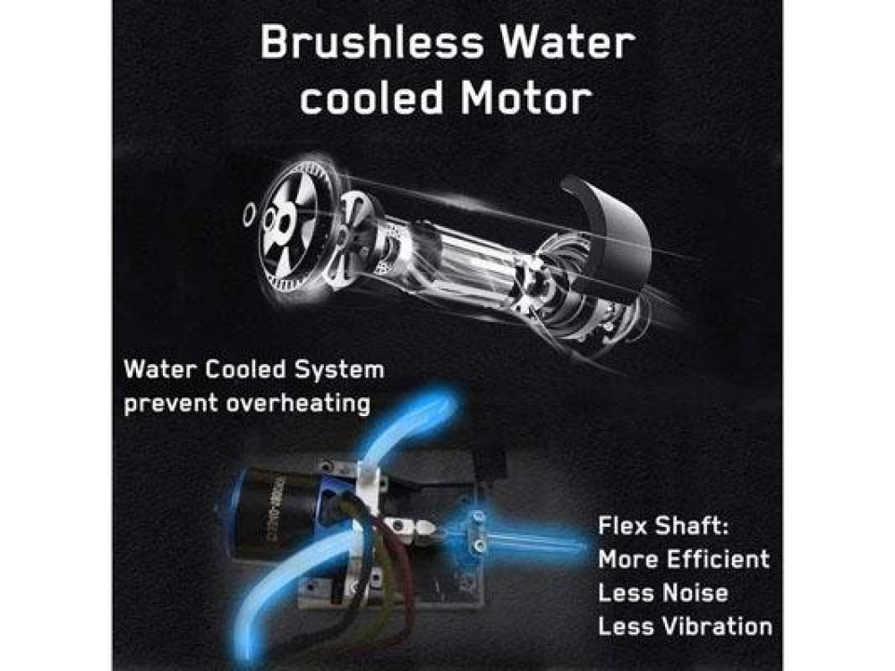 Большой катер на радиоуправлении с мощной бесколлекторной системой способен за пару секунд развить скорость до 70 км/ч. PRO версия отличается от стандартной еще более мощным мотором и регулятором оборотов. Длина корпуса 80 см, центральный вал гибкий, что увеличивает эффективность и снижает уровень шума, на корме расположены металлические плавники для лучшей управляемости. В данном катере все элементы выполнены на профессиональном уровне с точной стыковкой деталей и настройкой. Крышка корпуса плотно стыкуется к кузову, между ними находится резиновая прокладка, которая не допустит попадания воды внутрь катера.
