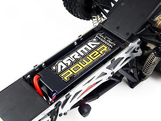 Электроника полностью влагозащищена: регулятор оборотов Arrma BLX на 80А загерметизирован от попадания песка, грязи, снега, воды, а приемник аппаратуры спрятан в отдельный защищенный от пыли и воды кейс с прорезиненной крышкой, поэтому Вы можете кататься в любую погоду. Корпус сделан из высокопрочной поликарбонатной смолы (лексан), которая намного более ударопрочна, чем обычный пластик. У колес - резиновый спортивный протектор. Шасси крепкое и жесткое специально для того, чтобы выдерживать удары и перегрузки, но облегченное за счет прорезей. За счет всех этих особенностей машинка прекрасно подходит как для трасс, так и для преодоления местности в сложных погодных условиях.