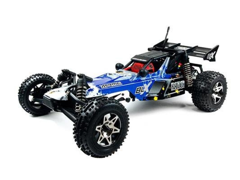 Arrma Raider 2WD RTR – это модель багги производства США, в масштабе 1:10. Цвет модели - синий с белым. Модель создана на базе бесколлекторной системы, разгоняющей машинку до 100 км/ч и работающей до 30 минут (в зависимости от интенсивности езды). Особенности Arrma Raider - это завышенная подвеска, прочный каркас, стильный спортивный корпус и колеса dBoots с крупным протектором.