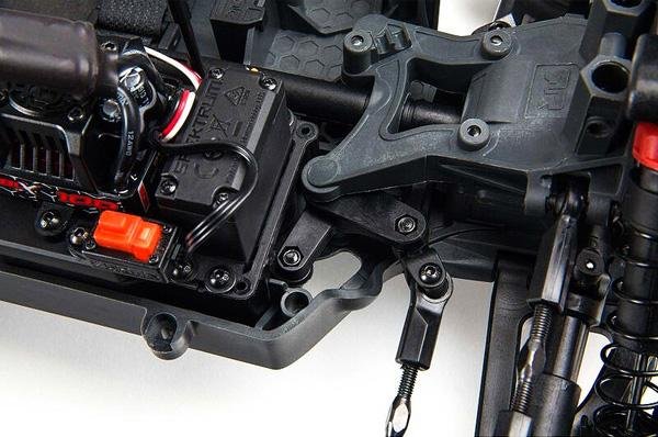 Машинка изготовлена из фрезерованных алюминиевых и композитных деталей, чтобы обеспечивать надежность и долговечность при высоких скоростях, пересечении трудных маршрутов, при прыжках и падениях. Отметим несколько инженерных решений, которые нашли применение именно в Arrma GRANITE: