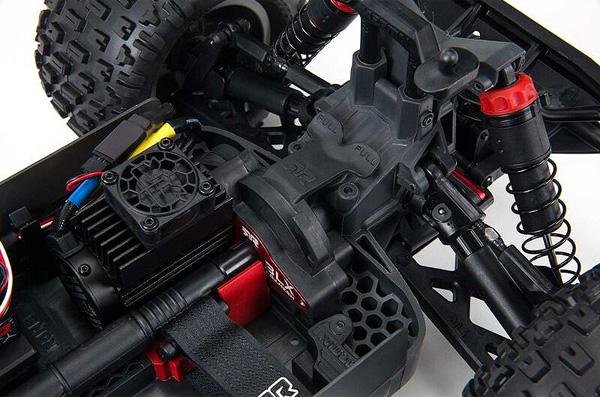 Машинка изготовлена из фрезерованных алюминиевых и композитных деталей, чтобы обеспечивать надежность и долговечность при высоких скоростях, пересечении трудных маршрутов, при прыжках и падениях. Отметим несколько инженерных решений, которые нашли применение именно в Arrma GRANITE: