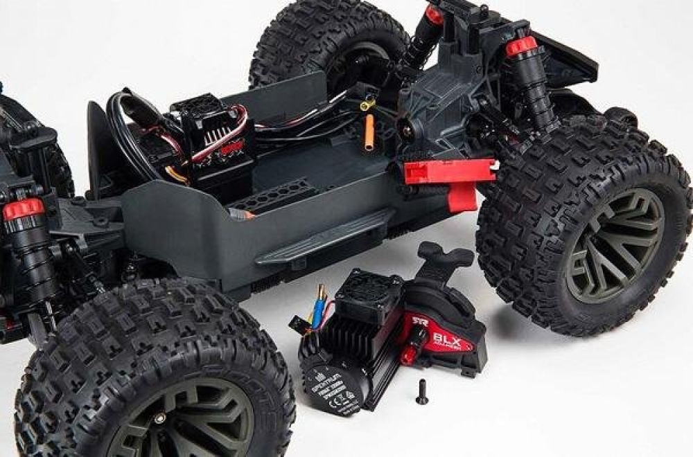 Из-за оригинальной модульной конструкции Вы можете не беспокоиться об удобстве извлечения деталей и электроники: доступ к силовой установке и к модулю электроники облегчен, как и обслуживание переднего и заднего дифференциалов. Силовой модуль можно легко извлечь из шасси целиком, открутив всего 1 винт. Сама силовая установка состоит из бесколлекторного мотора Spektrum Firma 4074 2050 kV с радиатором и вентилятором охлаждения, усиленной моторамы, проскальзывающего сцепления и крышки редуктора. Сняв силовой модуль, до проскальзывающего сцепления можно добраться, открутив 3 винта. К механизму редуктора тоже легко добраться, поэтому Вы без труда сможете настроить передаточные числа самостоятельно.