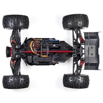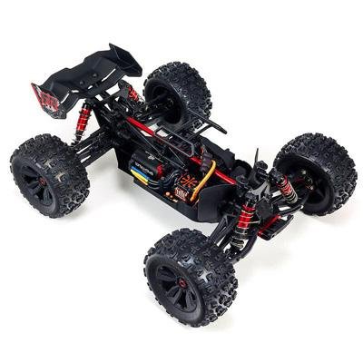 Большой скоростной монстр-трак от Arrma в масштабе 1:8. Прочный автомобиль с мощным бесколлекторным мотором. Скорость - до 97 км/ч. Обслуживание сведено к минимуму, хотя предусмотрены модификация и обновление аппаратуры. Корпус красно-чёрного цвета.
