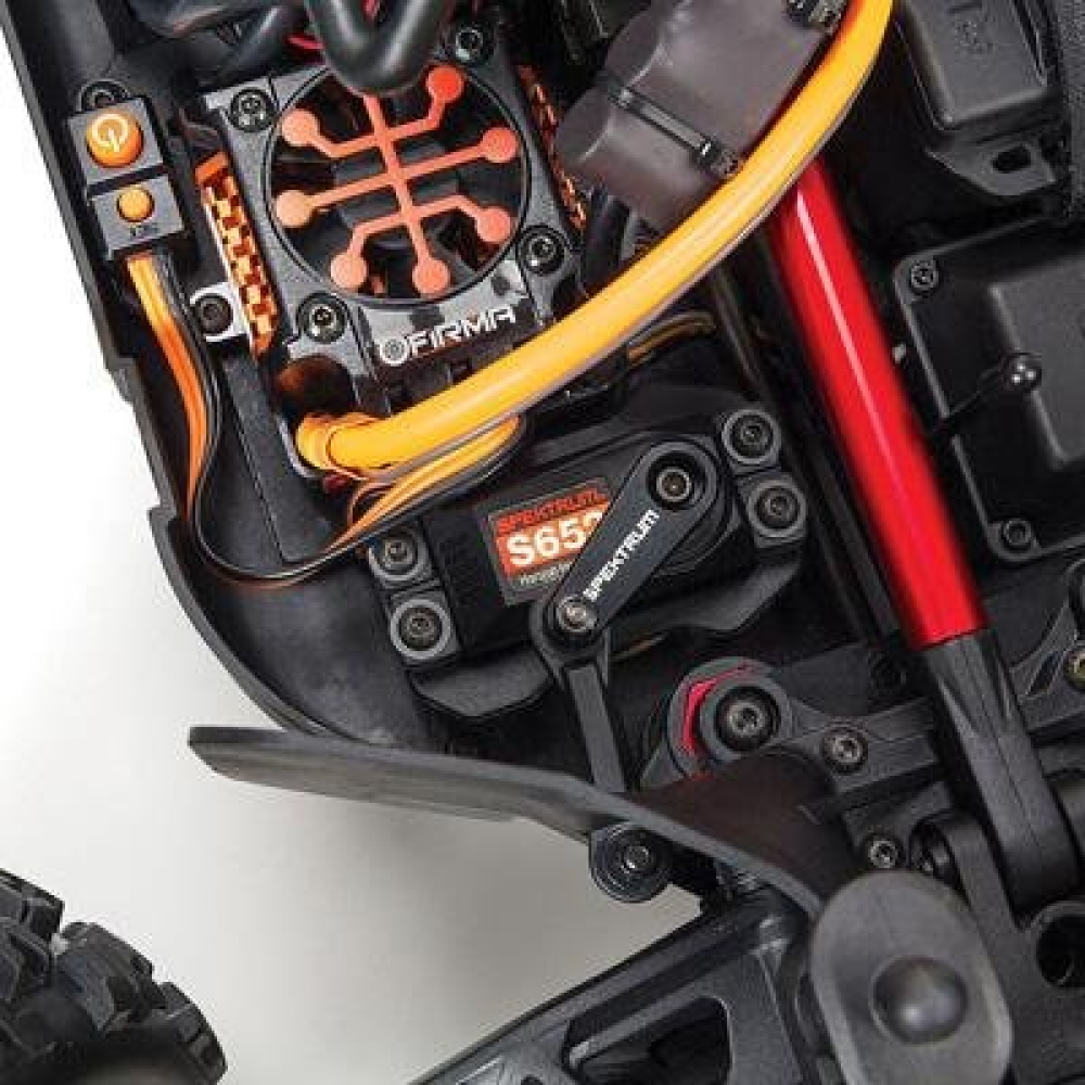 Arrma KRATON 6S V4 4WD BLX - это модель производства США, машинка-монстр нового поколения с улучшенной бесколлекторной системой, наглядно демонстрирующая уникальную особенность лучших машин от Arrma: это машины для всех типов заездов, начиная от скоростных и заканчивая прыжками и дрифтом. Главные особенности новой системы - это электронный регулятор скорости Spektrum Firma 150A Smart и мощный бесколлекторный мотор Firma 2050kV, обеспечивающие моментальное ускорение, невероятный крутящий момент и одну из самых высоких скоростей, доступных на рынке радиоуправляемых моделей машин. Большое антикрыло обеспечивает монстру лучшую прижимную силу и отличную управляемость, чтобы пользователь мог легко справиться с моделью на высоких скоростях. Сервопривод улучшен для моментального отклика.