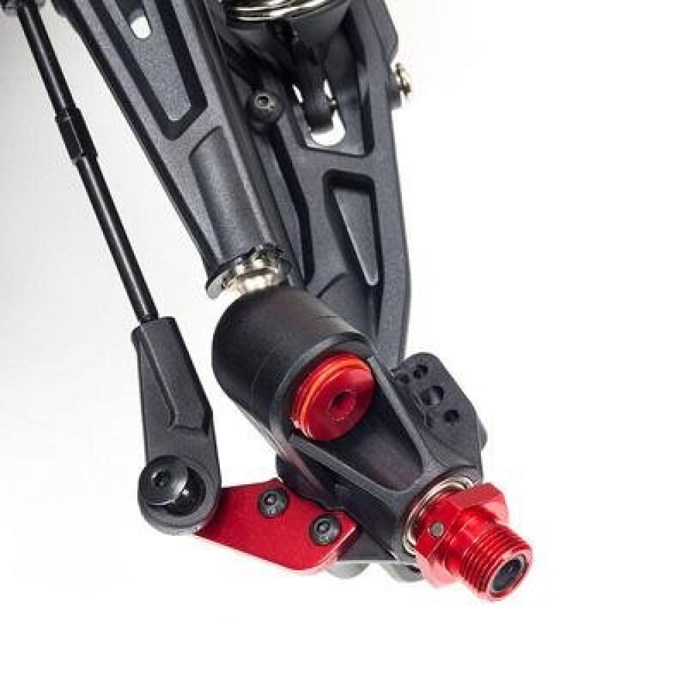 Компоновка узлов спроектирована эффективно, но надежно: красная анодированная моторама откручивается в несколько движений для быстрого доступа к мотору и замены передаточных чисел. Центральный дифференциал крепится на 4 винта и прост в обслуживании. При этом сервосейвер не откручивается, наконечники шарнирных соединений не соскакивают.