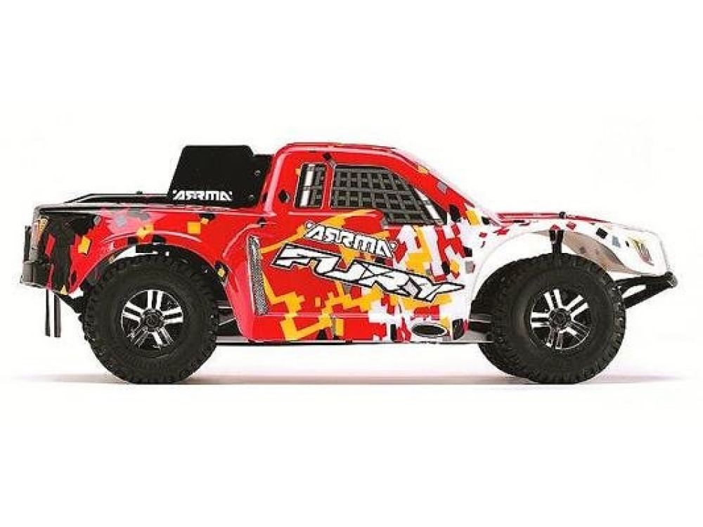 Arrma Fury 2WD RTR – это шорт-корс производства США, в масштабе 1:10. Цвет модели - красный с белым. Модель создана на базе коллекторной системы, разгоняющей машинку до 50 км/ч и работающей до 30 минут (в зависимости от интенсивности езды). Линейка Arrma Fury отличается множеством разных особенностей и вниманием к деталям, что выделяет её на фоне множества других радиоуправляемых моделей.