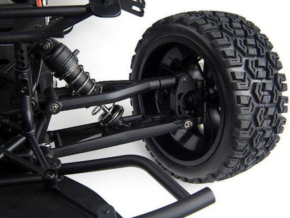 Электроника полностью влагозащищена: регулятор оборотов MEGA загерметизирован от попадания песка, грязи, снега, воды, а приемник аппаратуры спрятан в отдельный защищенный от пыли и воды кейс с прорезиненной крышкой, поэтому Вы можете кататься в любую погоду. Сервоприводу вода тоже не страшна. Корпус сделан из высокопрочной поликарбонатной смолы (лексан), которая намного более ударопрочна, чем обычный пластик. У колес - резиновый спортивный протектор, за задними колесами располагаются настоящие брызговики. Шасси крепкое и жесткое специально для того, чтобы выдерживать удары и перегрузки, но облегченное за счет прорезей. За счет всех этих особенностей машинка прекрасно подходит как для трасс, так и для преодоления местности в сложных погодных условиях.