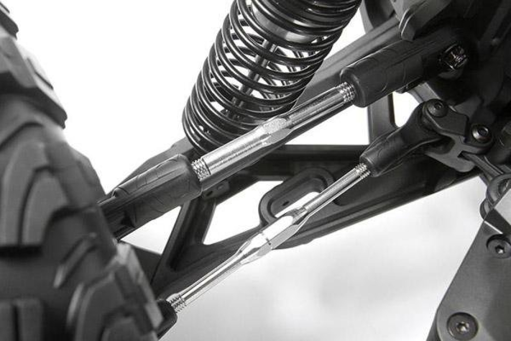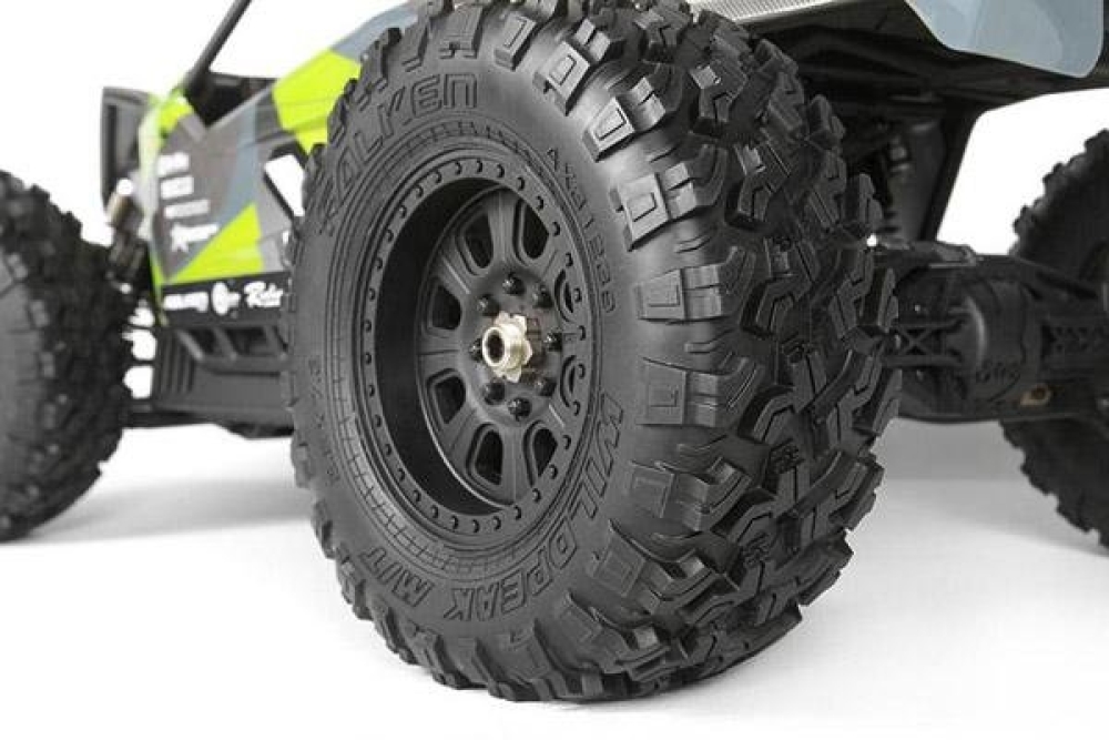 Песчаная багги большого масштаба 1 к 8 - одна из лучших от компании Axial. Вся модель уникальна от деталей подвески до элементов кузова, все отлично проработано и настроено на заводе. Машинка имеет крепкую подвеску, металлические приводы и регулируемые верхние рычаги. Сзади пластиковые рычаги усилены металлическими пластинами. Все шестерни дифференциалов изготовлены из стали что делает их практически вечными и какое либо серьезное обслуживание не потребуется. Амортизаторы имеют длинный ход и двойные пружины для лучшего распределения нагрузки. Задний приводной вал WB XL CVJ специально разработан для этой машины. Для максимально сцепления с дорогой на авто установлены профессиональные шины Falken Wildpeak M / T.