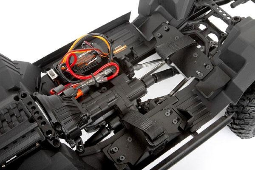 | Комплектация | Axial трофи, приемник + регулятор оборотов Spektrum FIRMA 40A, водонепроницаемый коллекторный двигатель Axial 35T, влагозащищённый сервопривод Spektrum S614 с металлическим редуктором (23T), сервопривод Spektrum SX107 микро-размера для функции блокировки задней оси, передатчик Spektrum DX3 с частотой 2,4 ГГц, четыре батарейки размера AA для передатчика, инструкция |