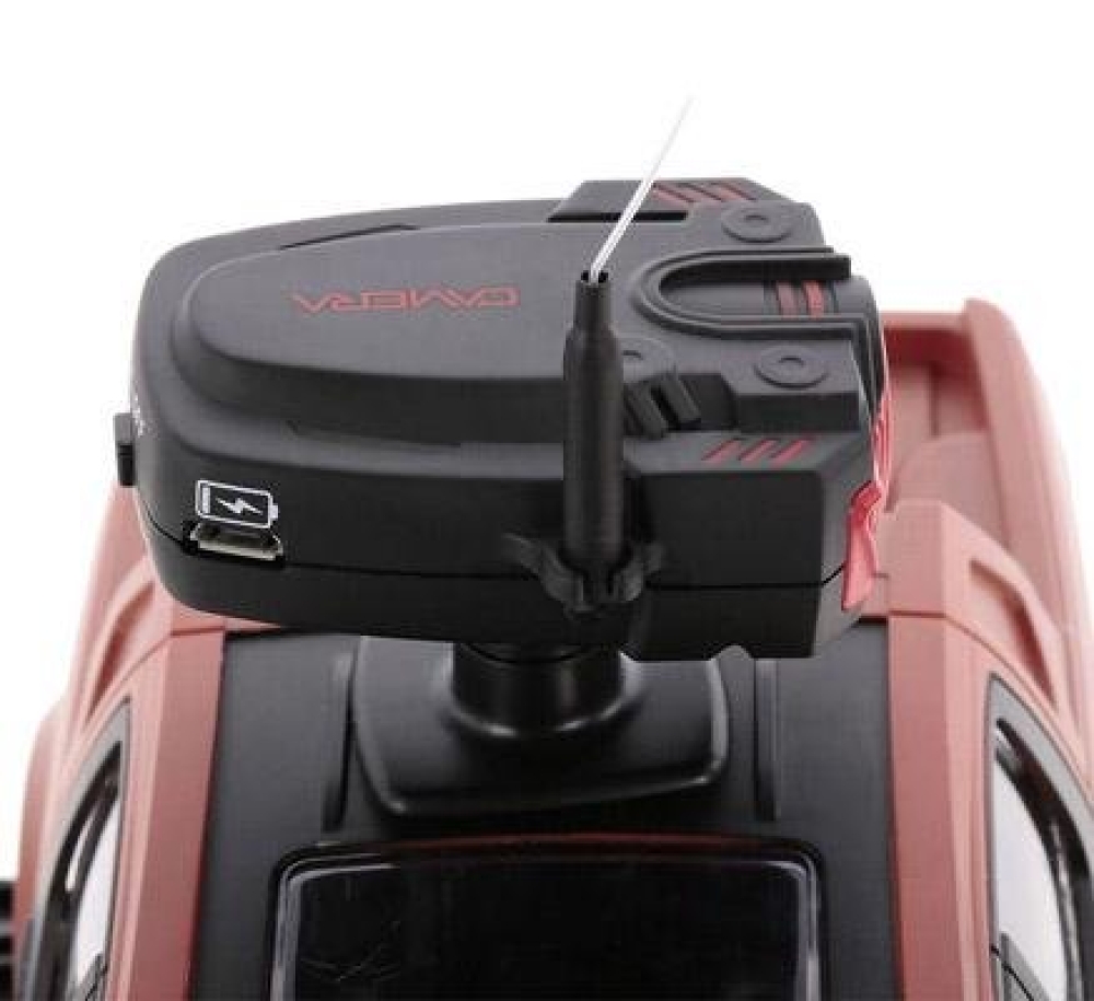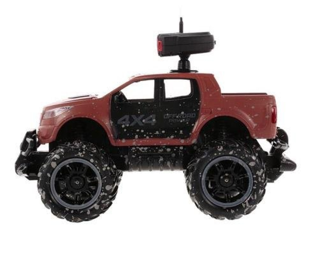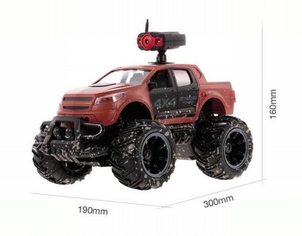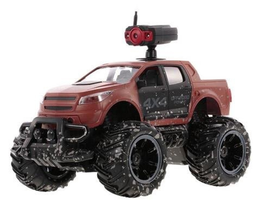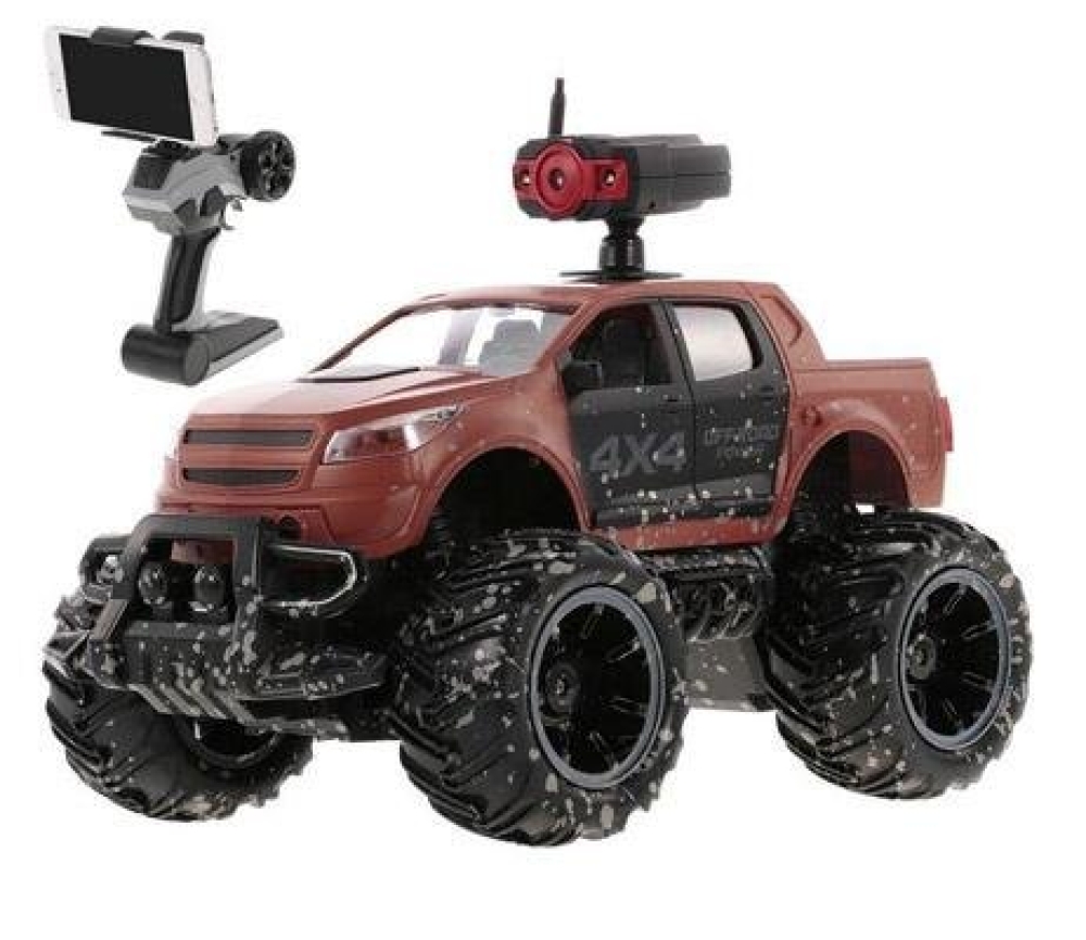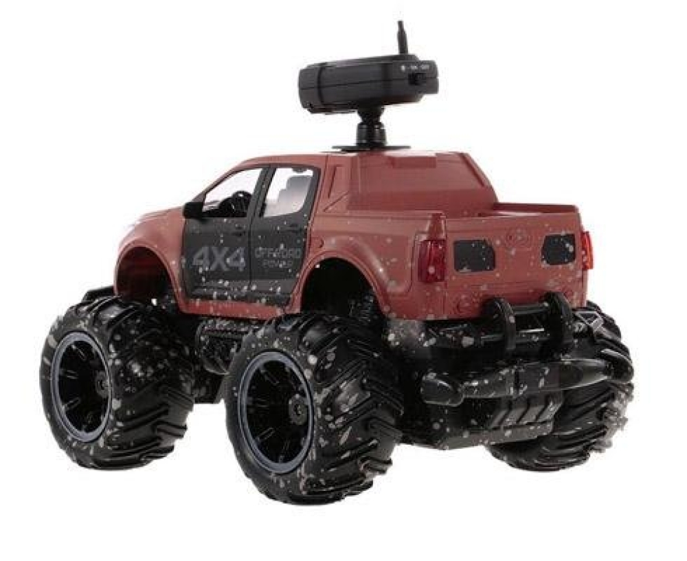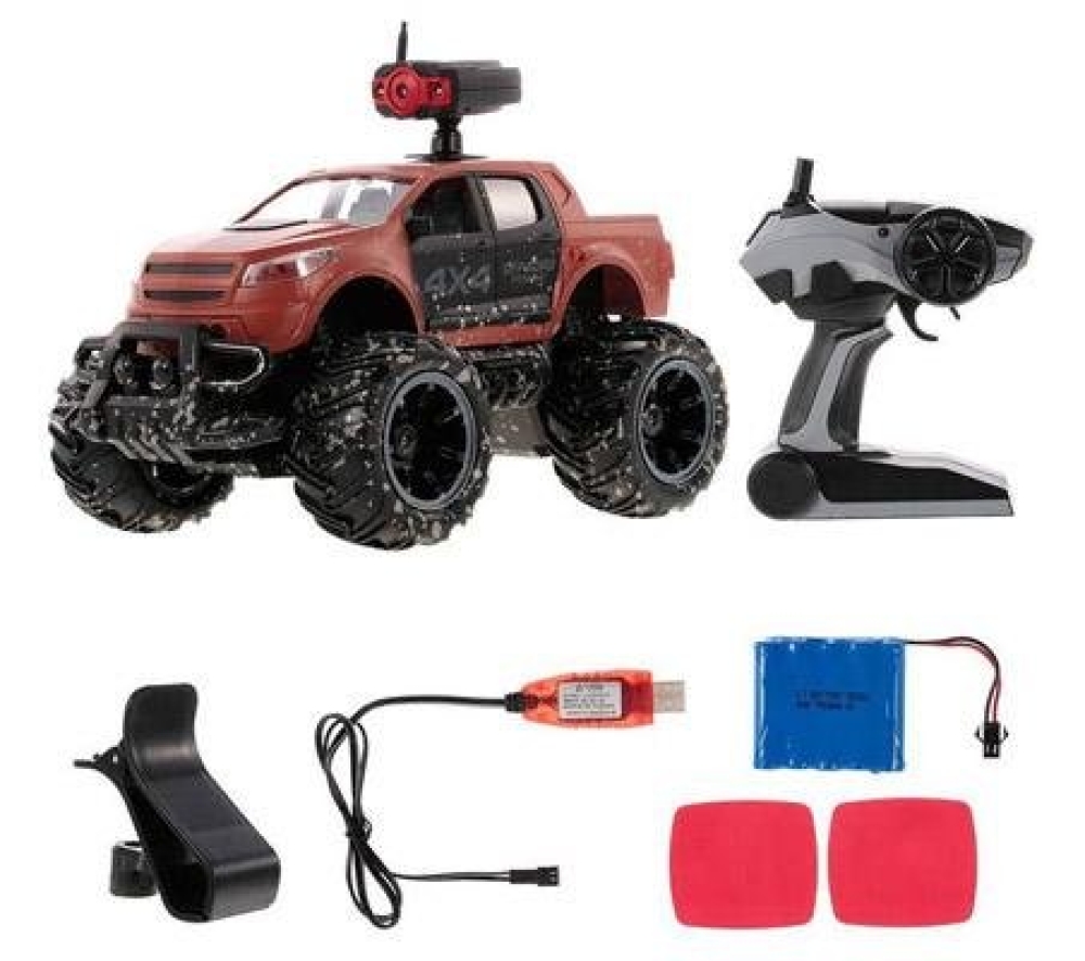 Пикап повышенной проходимости отлично подойдет начинающим гонщикам, построена на базе шасси закрытого типа, т.е. вся электроника и основные механические детали спрятаны под пластиковым корпусом, что дополнительно защищает их от внешнего воздействия. Кузов окрашен с имитацией грязевых следов, что придает ей большей реалистичности. Машинка имеет резиновые покрышки с особым протектором и может ездить по всем типам дорожных поверхностей. Пропорциональное управление позволит плавно разгоняться и аккуратно объезжать препятствия. Главной особенностью игрушки является наличие на крыше камеры с видео трансляцией. FPV камера имеет разрешение 0.3 mpx и поэтому без задержки передает видео на экран смартфона. Смартфон крепится к пульту с помощью кронштейна. Почувствуйте себя шпионом будущего! Машинка имеет 6 цветовых схем кузова.
