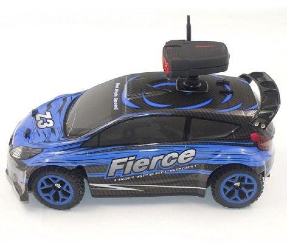 Гоночная машинка для ралли заездов среднего размера с приводом на задние колеса, имеет отличную управляемость. Модель отлично подойдет начинающим гонщикам, построена на базе шасси закрытого типа, т.е. вся электроника и основные механические детали спрятаны под пластиковым корпусом, что дополнительно защищает их от внешнего воздействия. Машинка имеет резиновые покрышки и может ездить по всем типам дорожных поверхностей. Пропорциональное управление позволит плавно разгоняться и аккуратно объезжать препятствия. Главной особенностью игрушки является наличие на крыше камеры с видео трансляцией. FPV камера имеет разрешение 0.3 mpx и поэтому без задержки передает видео на экран смартфона. Почувствуйте себя шпионом будущего!