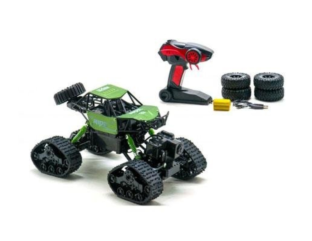 Уникальный краулер амфибия имеет возможность ездить на колесах, а также на гусеницах. В комплекте идут по 2 пары легкозаменяемых колес и гусениц. Благодаря этому вы можете использовать краулер как летом в сухую погоду, так и зимой по глубокому снегу. Высокий клиренс придает максимальную проходимость машинке, можно легко взбираться на высокие камни. Блок электроники расположен в специальном отсеке, который имеет герметичную крышку. Вы сможете преодолевать глубокие лужи и не большие водоемы. Модель имеет полный привод, обеспечивая максимальную проходимость. Кабина оснащена специальным каркасом безопасности, поэтому резкие опрокидывания не станут проблемой.