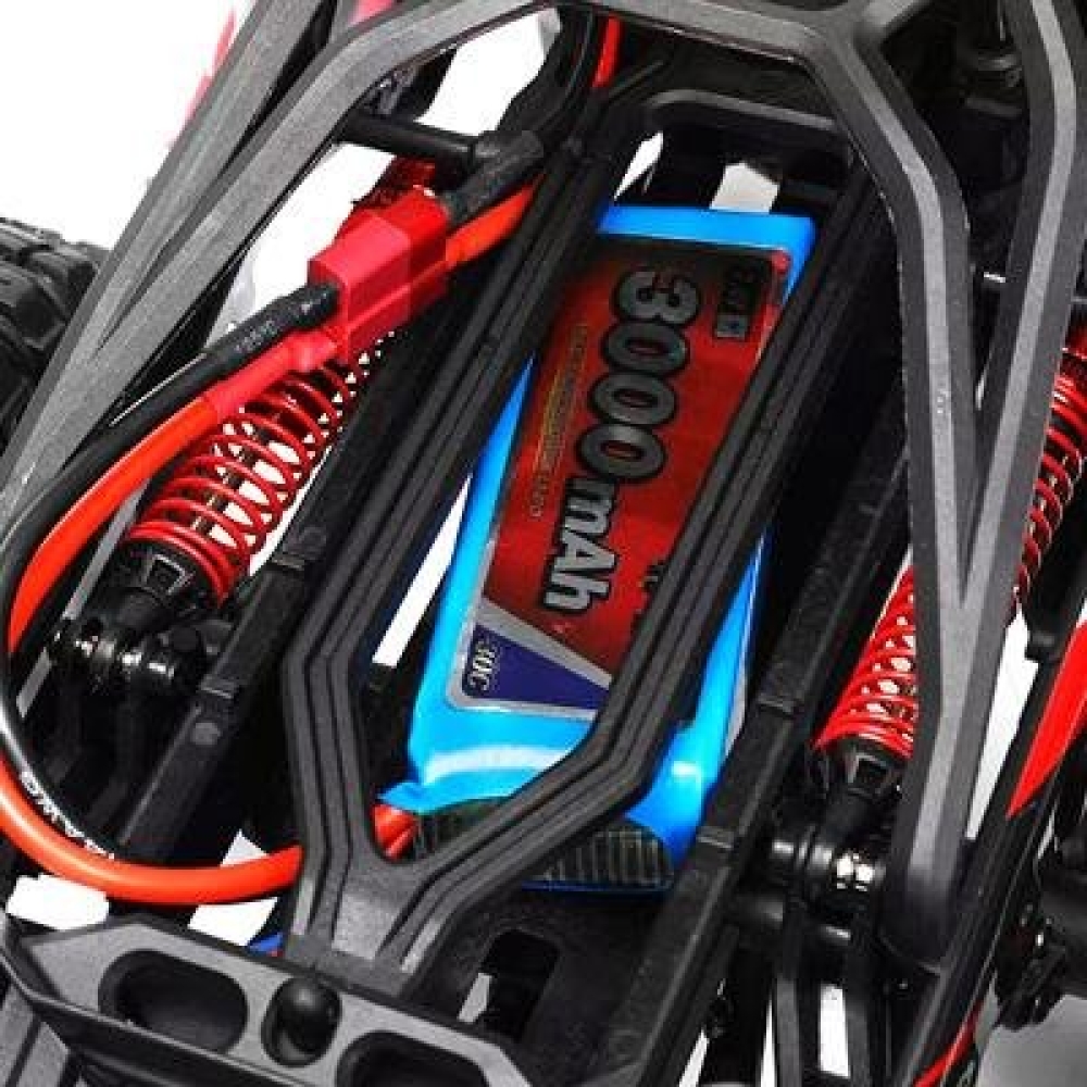Мощный радиоуправляемый краулер с вертикальными и горизонтальными масляными амортизаторами. Как будто предназначен для бездорожья или пустыни! Имеет отличную проходимость за счет большого хода подвески, а также хорошую управляемость на высокой скорости. Мотор имеет радиатор охлаждения, что продлевает срок его службы.