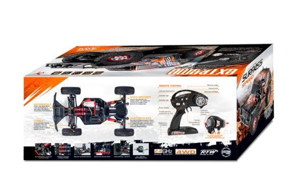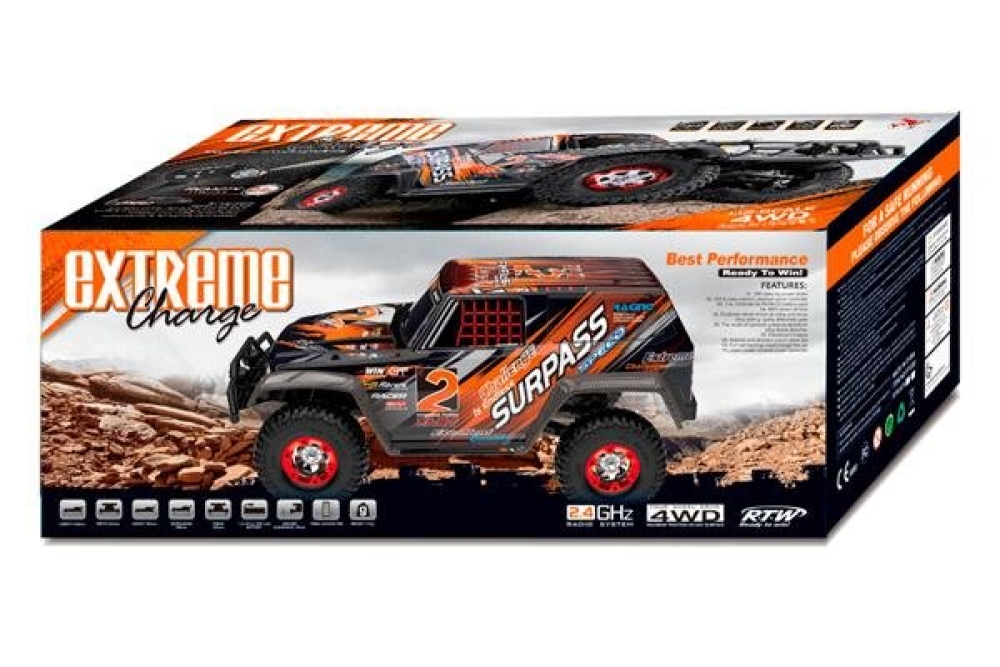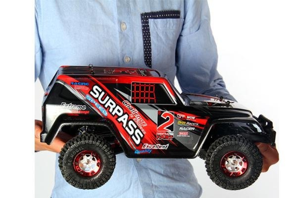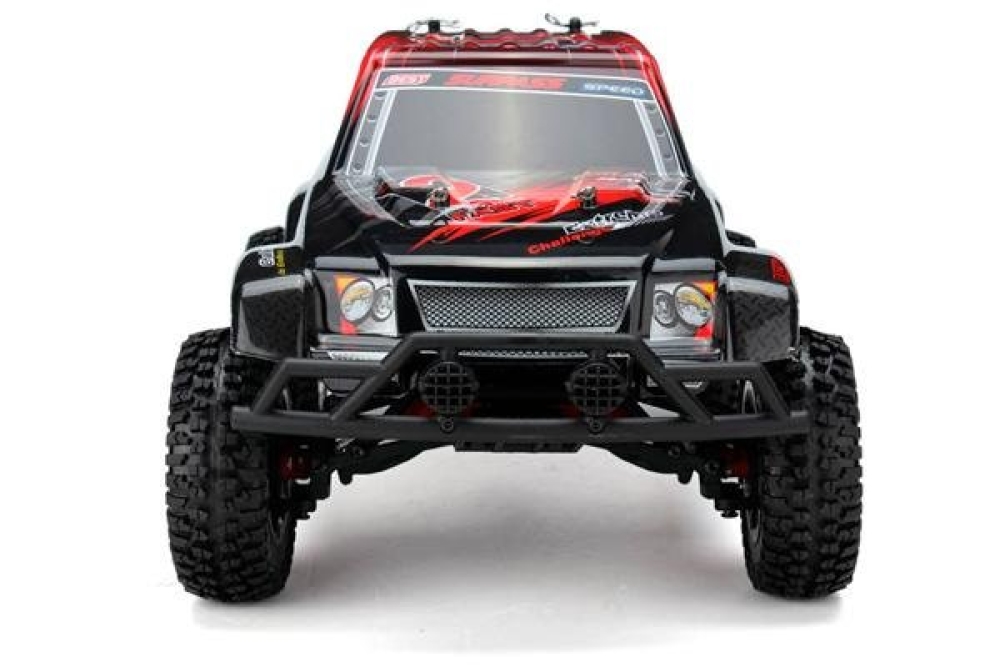 Мощный краулер с вертикальными и горизонтальными масляными амортизаторами. Имеет отличную проходимость за счет большого хода подвески, а также хорошую управляемость на высокой скорости. Мотор имеет радиатор охлаждения, что продлевает срок его службы. Модель оснащена 2-х ступенчатой коробкой передач, благодаря этому вы сможете выбрать оптимальную скорость для прохождения того или иного препятствия.