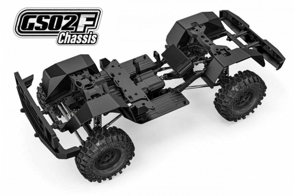 Рама шасси GS02F выглядит как рама настоящего грузовика. Он изготовлен из высокопрочной стали, а боковая балка с С-образным профилем и поперечинами с болтовым креплением делает его устойчивым к скручиванию и деформации. Стальные детали покрыты порошковой краской для защиты от ржавчины.