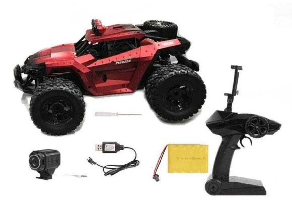 Багги с задним приводом 2WD имеет скорость до 25 км/ч, за быстрый старт отвечает мощный коллекторный мотор. Подвеска имеет пружинные амортизаторы, рычаги и стабилизаторы, обеспечивая мягкий и плавный ход. Особенностью машины является наличии FPV камеры, которая транслирует видео на экран смартфона. Дальность трансляции составляет до 100 метров. Модель можно использовать как дома, так и на улице, катаясь по асфальту, гравию или траве.