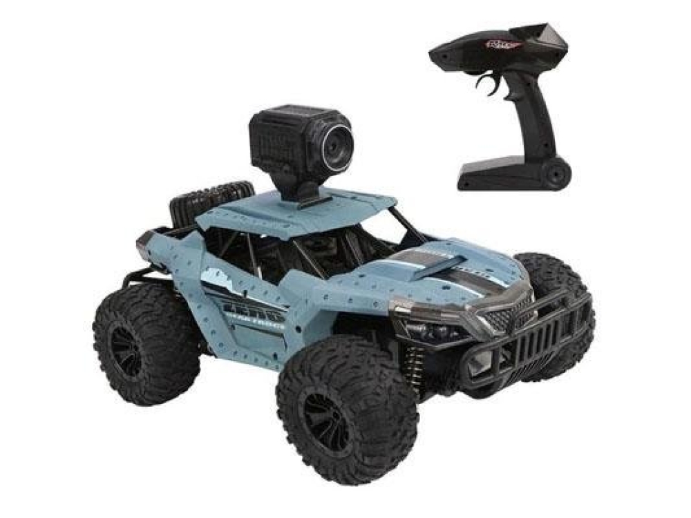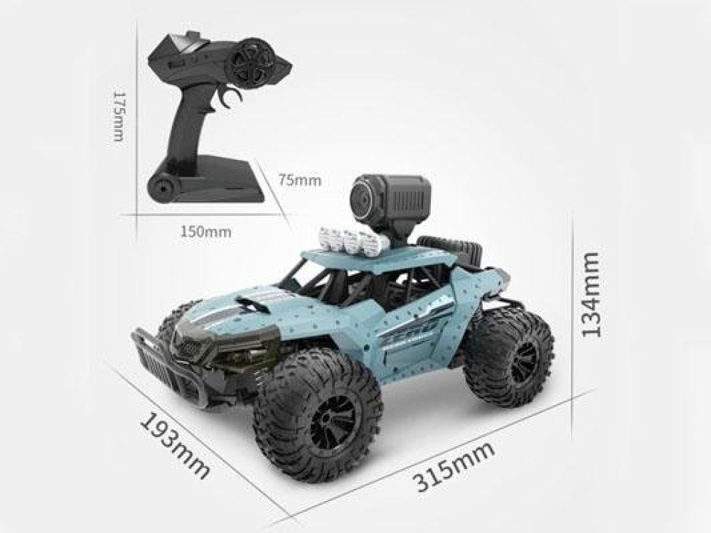 Игрушка машина для бездорожья в стиле багги подойдет для езды как в домашних условиях, так и на улице по легкому бездорожью в сухую погоду. Задний привод 2WD обеспечит хорошее ускорение и дрифт практически на любой поверхности. Вне готовых трасс машинка отлично себя чувствует благодаря качественной подвеске с пружинными амортизаторами. Помимо веселой скоростной езды данная багги имеет съемную камеру с возможностью трансляции видео на экран смартфона. Дальность передачи составит до 50 метров, поэтому можно передвигаться между помещениями, оставаясь на связи с машинкой. Управлять машиной можно как с помощью пульта, так и со смартфона, причем благодаря гироскопу, вы сможете рулить колесами наклоняя ваш смартфон влево и вправо.