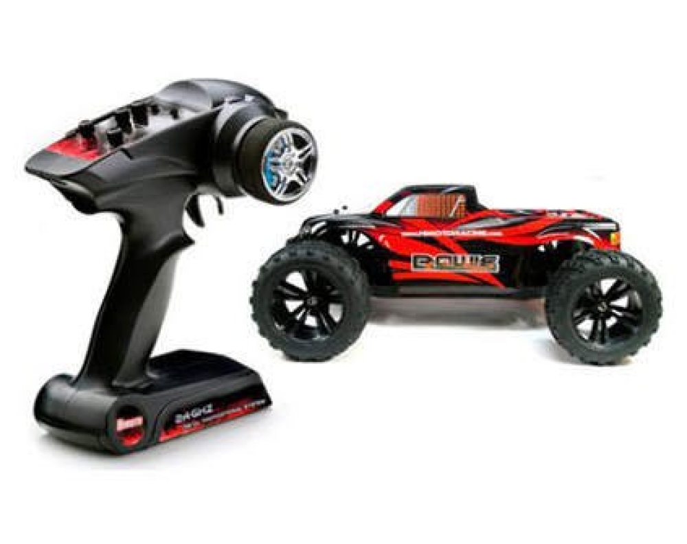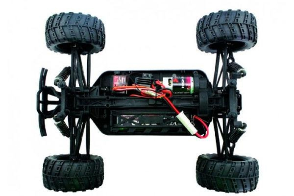 Пульт ДУ очень многофункциональный и удобный, с помощью него можно регулировать расходом и триммером газа и руля. Поставляется монстр-трак в собранном виде и сразу готов к заездам.