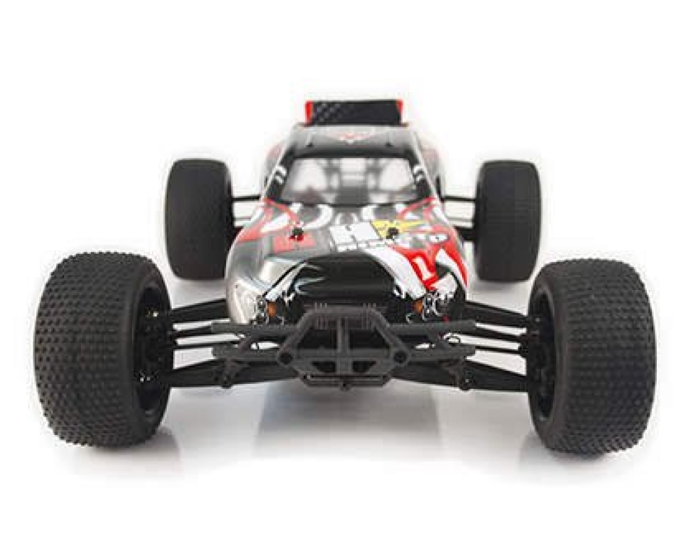 Радиоуправляемый трагги Himoto E10XTL Katana - полноприводный среднегабаритный внедорожник с эффектным дизайном кузова, изготовленный в масштабе 1:10. Трагги сконструирован специально для скоростного передвижения по пересеченной местности и впечатляющих прыжков - ему не страшны никакие препятствия при гонках по бездорожью. Продвинутая модель оборудована мощным бесколлекторным двигателем и способна развивать скорость до 60 км/ч. Мягкие масляные амортизаторы, большие резиновые колеса и предусмотренный конструкцией высокий клиренс помогут улучшить проходимость и сгладить неровности трассы. Регулятор скорости машинки скрыт под влагозащитой, благодаря чему достигается возможность устраивать заезды в любых погодных условиях, не боясь попадания влаги и грязи в электронику. Himoto E10XTL Katana имеет простое управление, освоить которое сможет каждый, комплектуется удобным пультом ДУ с дальним радиусом действия 150 метров.