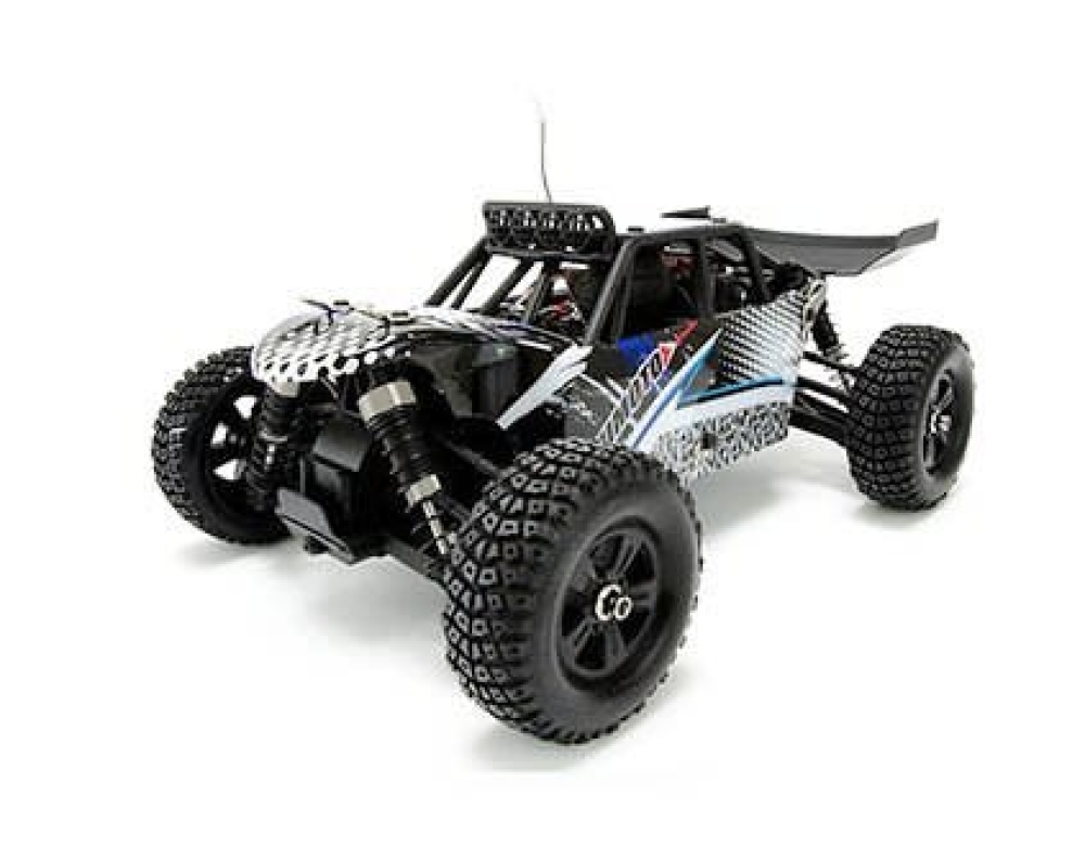Конструкция машинки обеспечивает ей отличную проходимость даже в условиях бездорожья и пересеченной местности. Модель поставляется в собранном и настроенном виде, чтобы вы сразу смогли оценить скорость и драйв этого яркого багги.