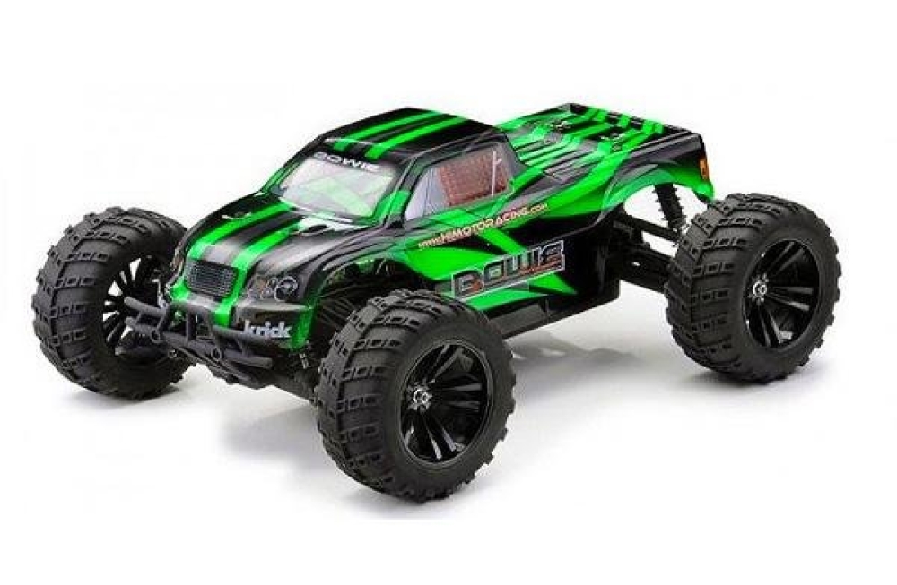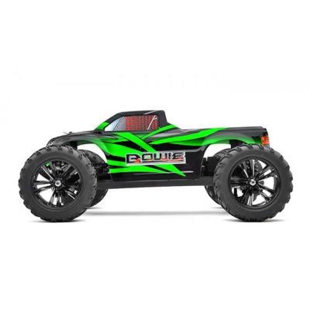 Himoto Bowie E10MT 4WD RTR - полноприводный среднегабаритный монстр-трак, изготовленный в масштабе 1:10. Данная модель выполнена в черно-зеленом цвете.
