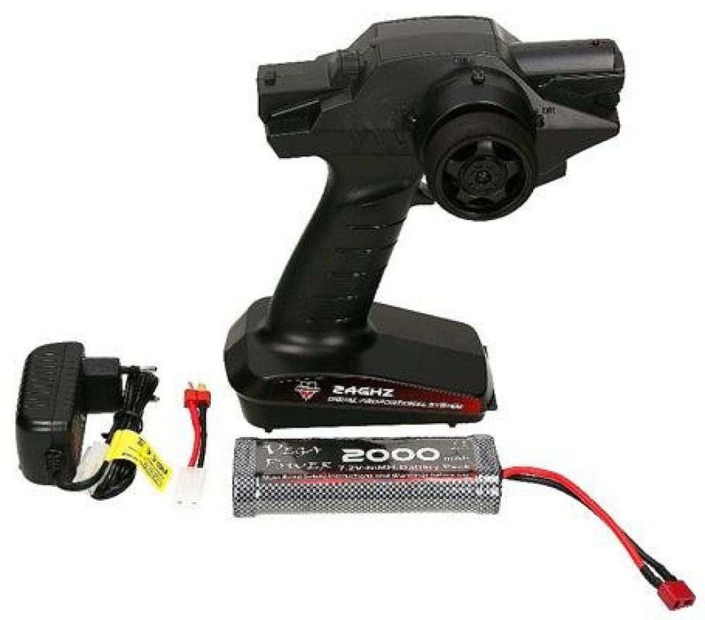 Комплект поставки: полностью собранная модель машины, аккумулятор Ni-Mh 7.2В 2000 мАч, зарядное устройство для аккумулятора, пульт управления моделью 2.4 Ghz, инструкция.