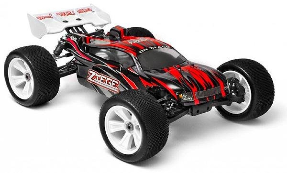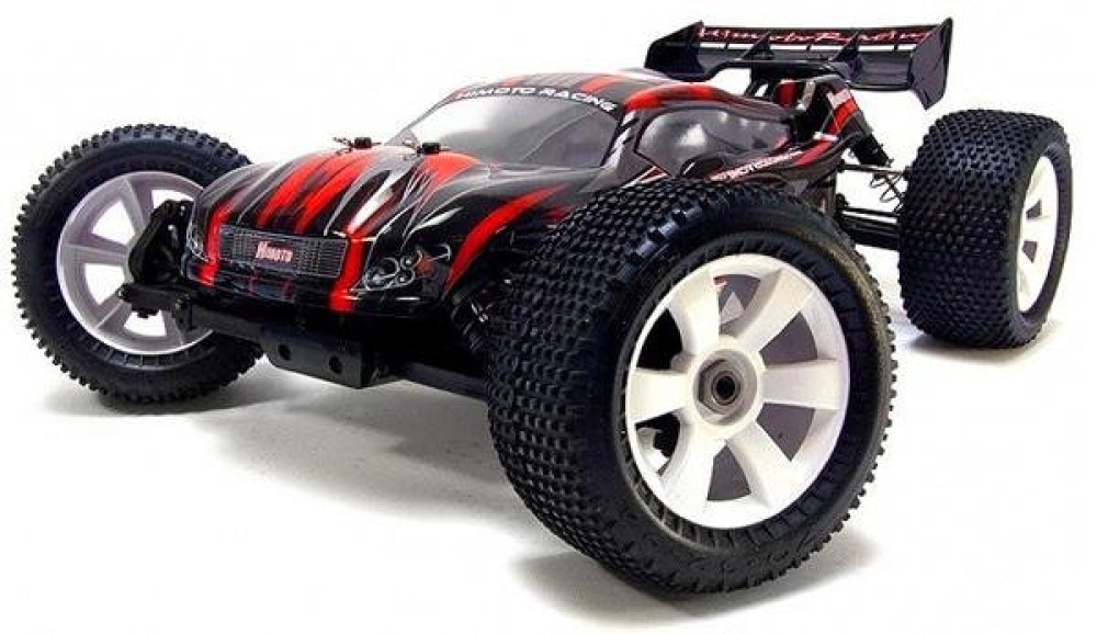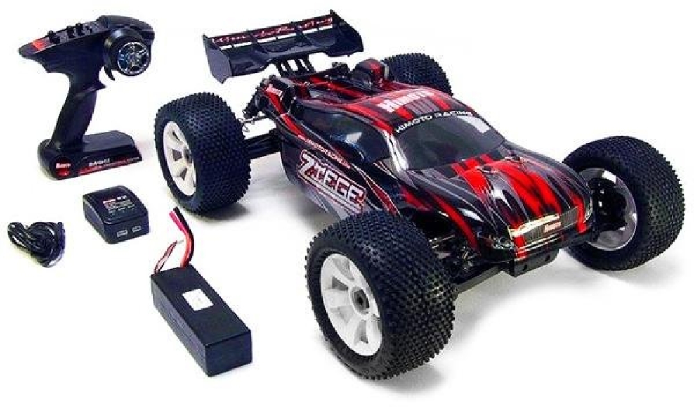 Скоростная радиоуправляемая модель внедорожной трагги Himoto Ziege MegaE8XTL Brushless 1:8 RD с бесколлекторной системой. Цвет - красно-чёрный. Масштаб модели 1:8, у неё полный привод. В новой линейке радиоуправляемых машин Himoto E8 агрессивный яркий дизайн сочетается с внушительными размерами и бешеной скоростью. Это впечатлит даже опытного автолюбителя. Модель не боится кочек, небольших камней и неплохо показывает себя на треках, рассчитанных на прыжки.