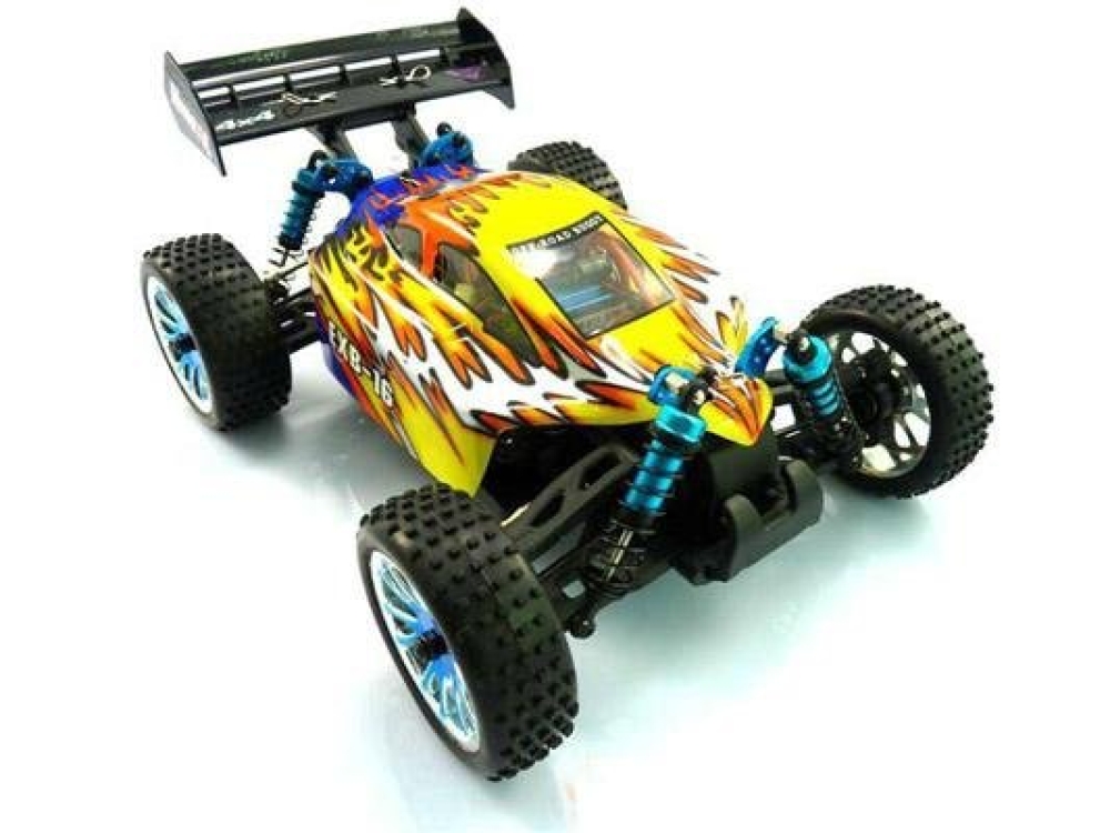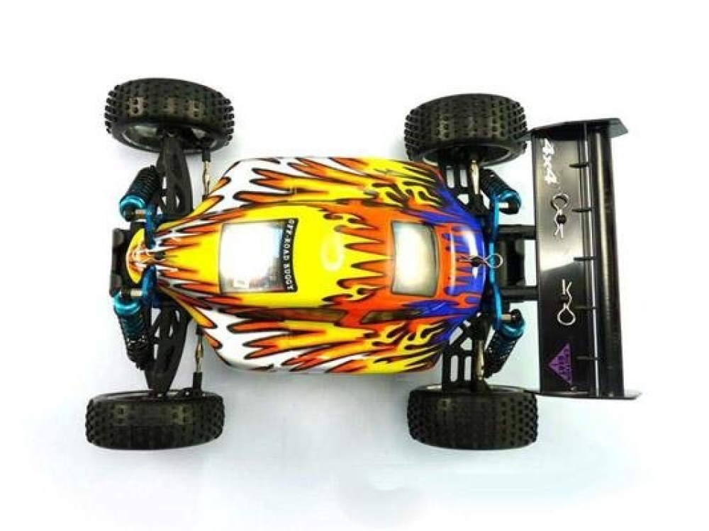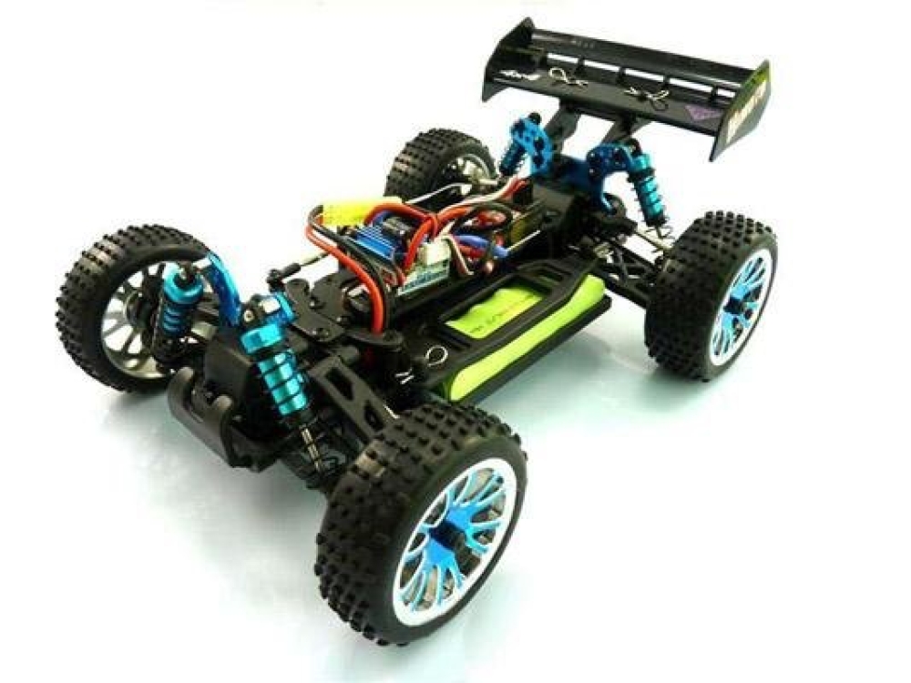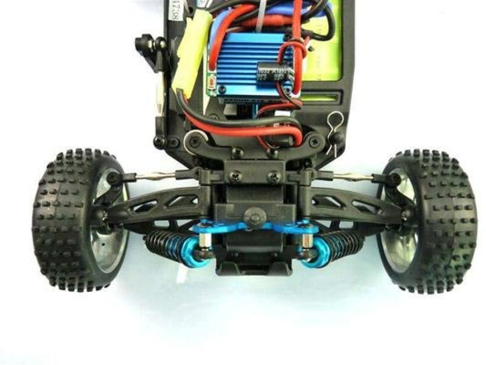 Багги средних размеров на BRUSHLESS системе. Это значит что машинка будет очень быстрая и долговечная благодаря бесщёточному мотору. Моторный отсек - открытого типа, для быстрого доступа к шестеренкам и их чистке и обслуживанию, т.к. основной тип дорожного покрытия для это машинки это пересеченная местность или легкое бездорожье. За прочность отвечают стальные рычаги, приводы и чашки колес, а также алюминиевые амортизаторы и стойки крепления. Все шестерни, в т.ч. редукторов также из металла. Бесколлекторный мотор выдает максимум мощности для машинки такого размера, но можно выжать еще больше, заменив штатный аккумулятор на литий полимерный. Электроника очень удачно расположена - на верхней защитной деке. Это дополнительно обезопасит ее от воздействия среды во время заездов.