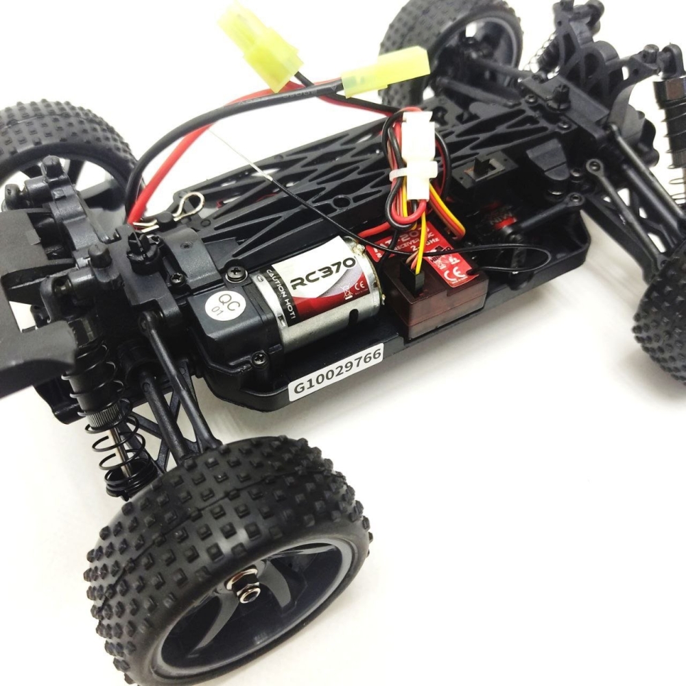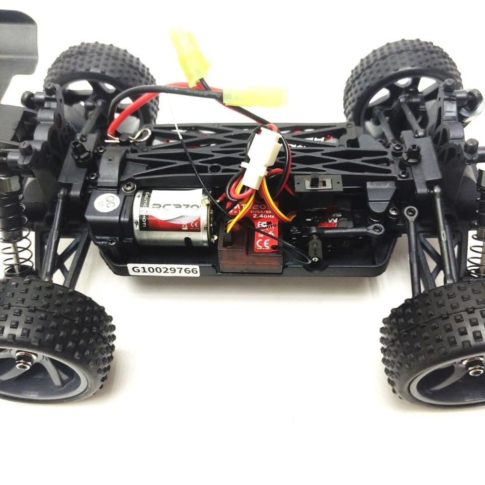 Радиоаппаратура модели представляет из себя установленный 4-канальный приёмник и 2-канальный передатчик частотой 2,4 ГГц. Передатчик отличается малыми габаритами и простотой. В то время как большинству систем требуется 8 элементов питания, данный обходится 4. Встроенная в корпус антенна не сломается при переноске, а органы настройки удобно расположены вверху, на видном месте. Помимо привычных настроек, имеется регулировка хода рычага и переключатель мощности частоты. Зарядка аккумуляторов передатчика производится с помощью подключаемого адаптера напряжением 6В (опционно).