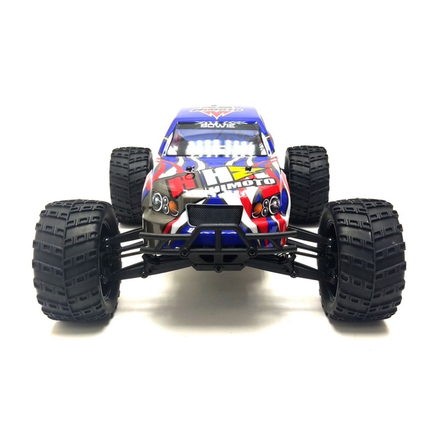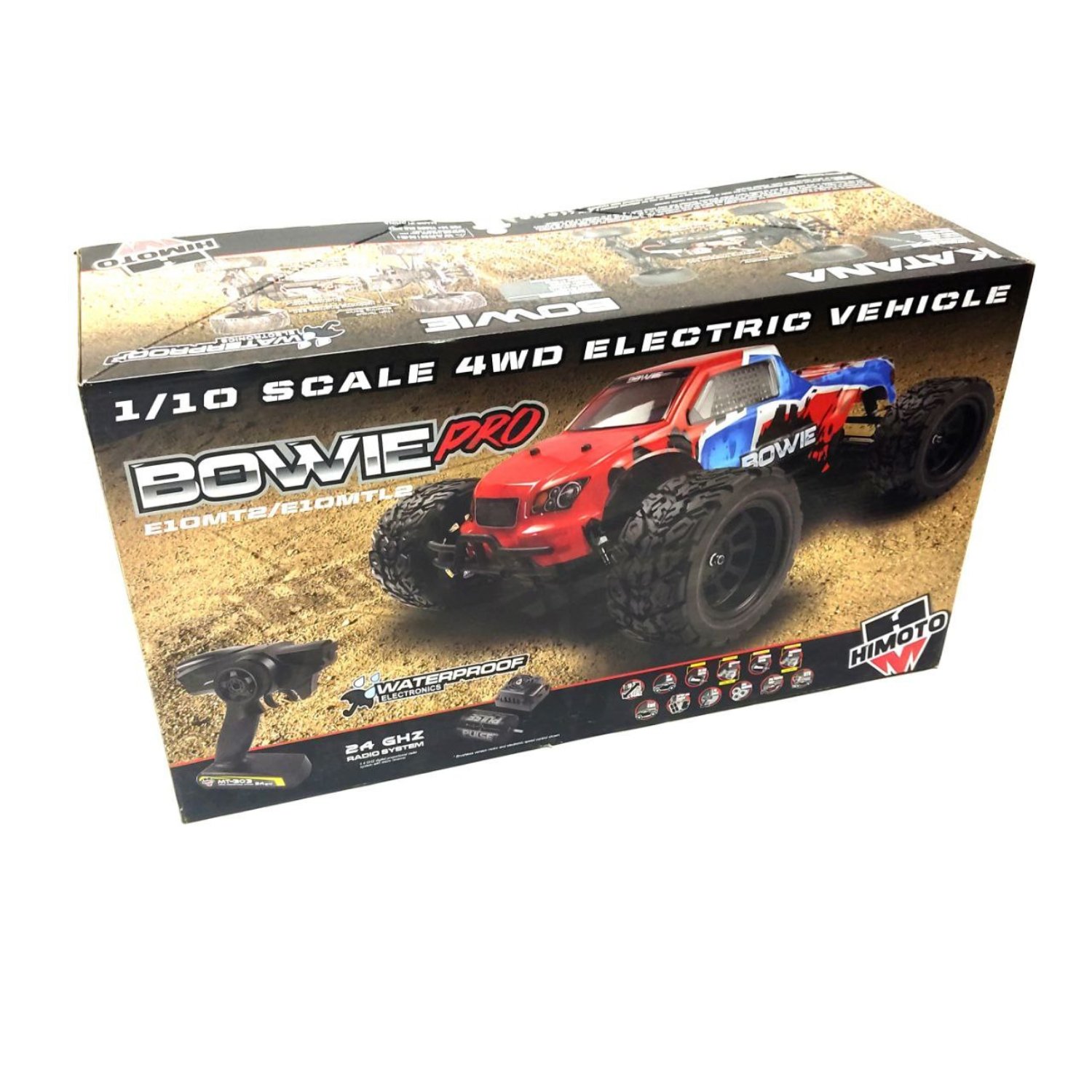 Himoto Bowie безупречно ведет себя на предварительно подготовленных и сложных трассах. Компоненты и ключевые узлы этого монстра серии E10MT 4WD RTR надежно защищены от попадания влаги, грязи и слякоти. Показатели проходимости дополнительно увеличены благодаря минимальному количеству выступающих элементов на днище.