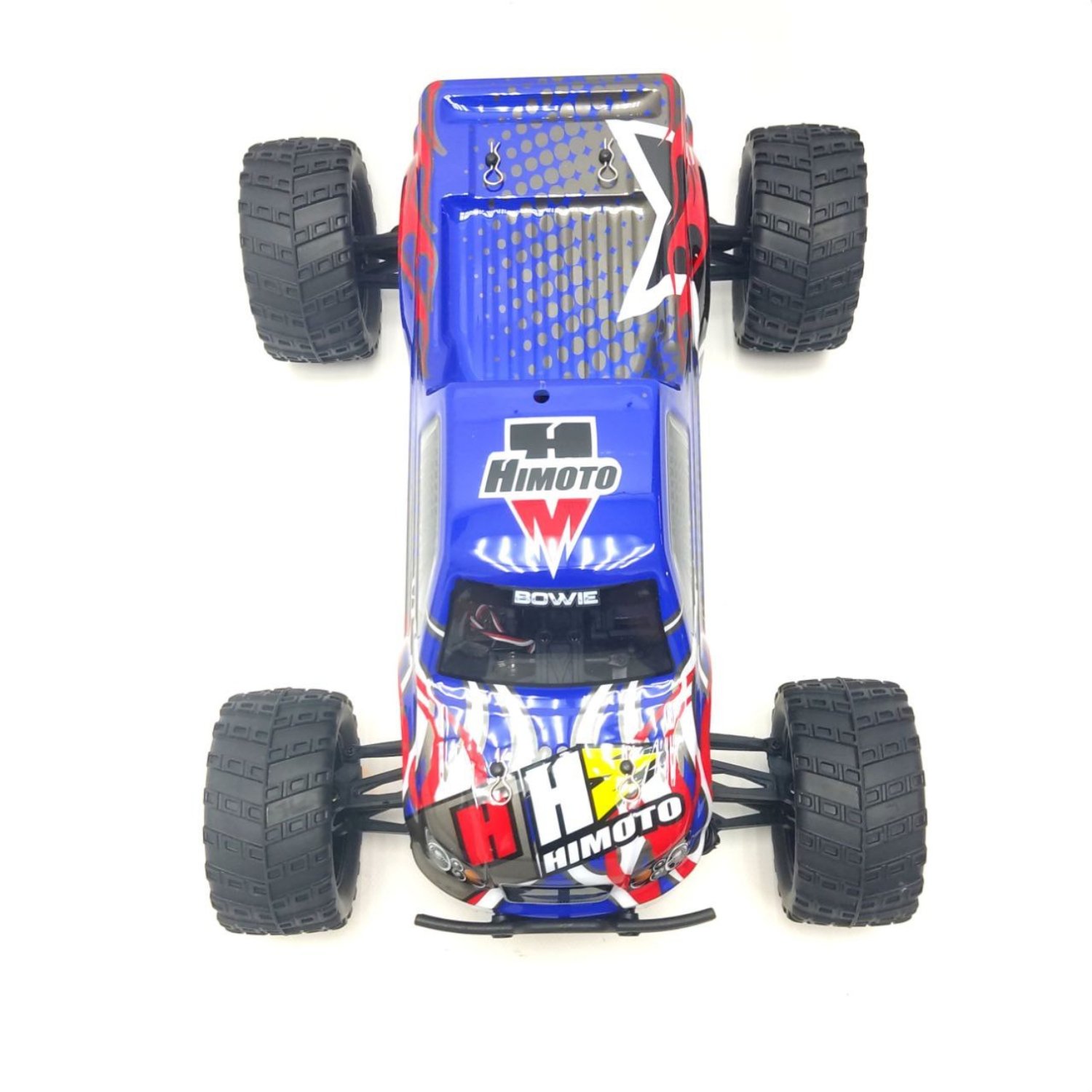 Широкие вездеходные шины с развитыми грунтозацепами гарантируют сцепление на любой поверхности. Кузов уже вырезан и окрашен, так что вы можете запускать ваш грузовик, как только зарядите аккумулятор. Экстремальный Himoto Bowie готов мчаться как ветер прямо из коробки, а вы готовы справиться с его скоростью? Нужно только подсоединить заряженный аккумулятор. Все остальное уже есть в комплекте. Комплектация включает все необходимые дополнительные устройства и аксессуары. Единственное, что нужно приобрести — 4 батарейки АА для работы пульта.