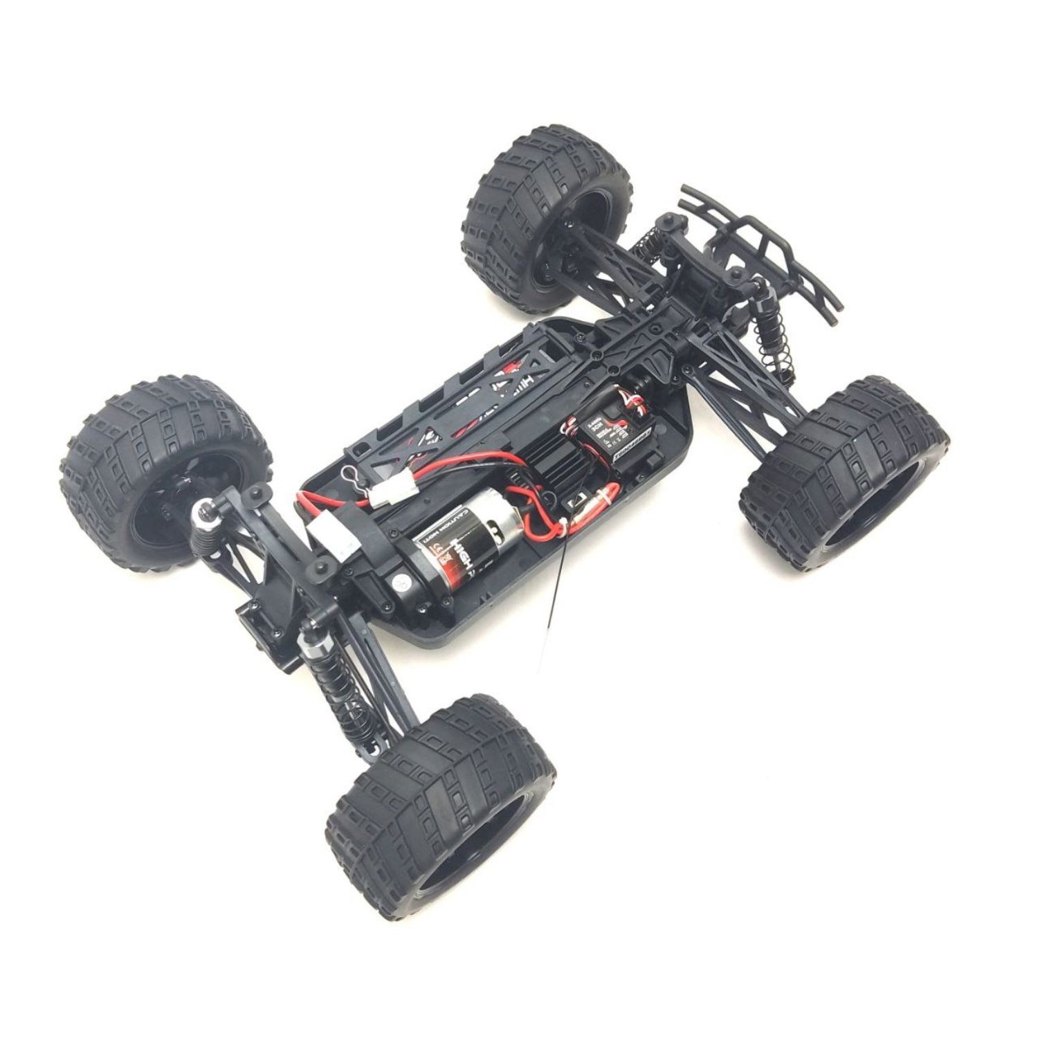 Точное управление и контроль гарантирует радиоаппаратура 2,4 ГГц. Передатчик пистолетного типа с курком газа и удобным рулевым колесом позволяет регулировать двойные расходы, имеет триммеры газа и руля, что помогает адаптировать управление под высокую мощность и скорость этого грузовика.