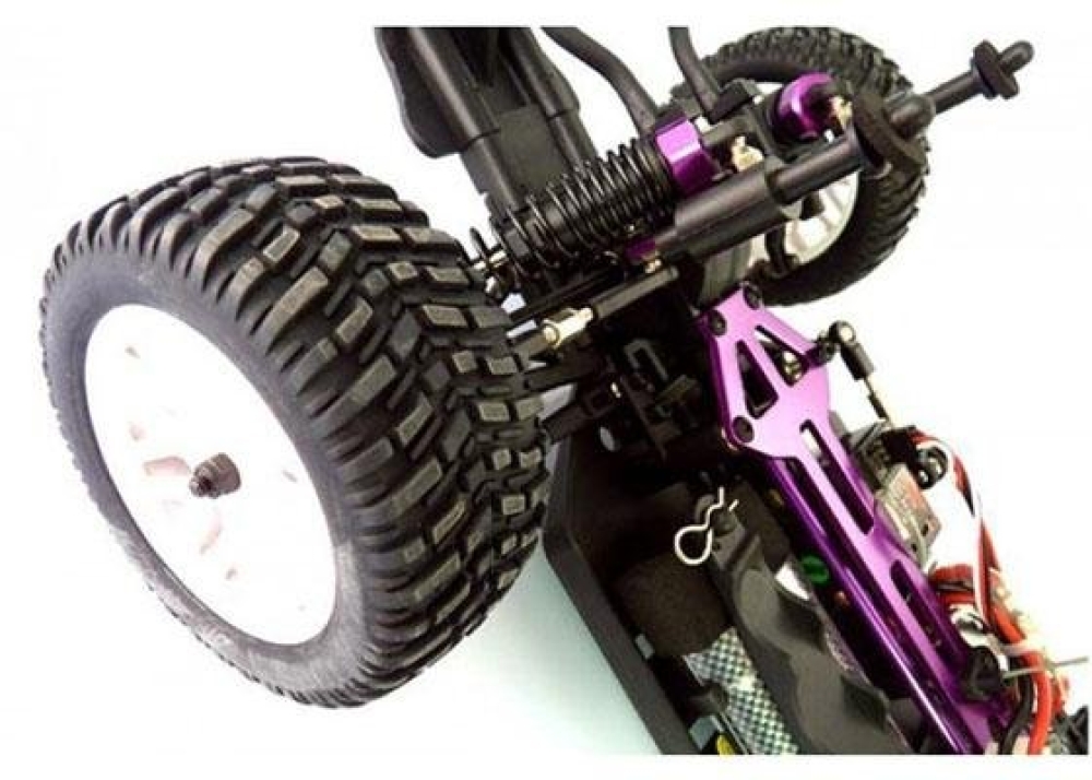 Шорт корс в топовой комплектации. Все основные механические и электронные узлы существенно доработаны и усилены. Рычаги передней и задней подвески, а также рулевые тяги и приводы колес выполнены из металла, что в разы увеличивает прочность и срок службы деталей. Алюминиевая продольная силовая пластина поможет избежать переломов пополам при лобовых столкновений или сверхвысоких прыжках. 4 масляных пружинно-гидравлических амортизатора уверенно нивелируют грубые поверхности дорожного покрытия. БК система за пару секунд разгонит автомобиль до 50 км/ч при этом не перегреваясь.