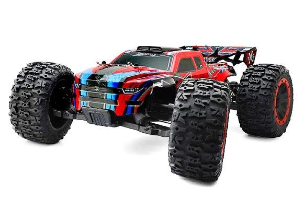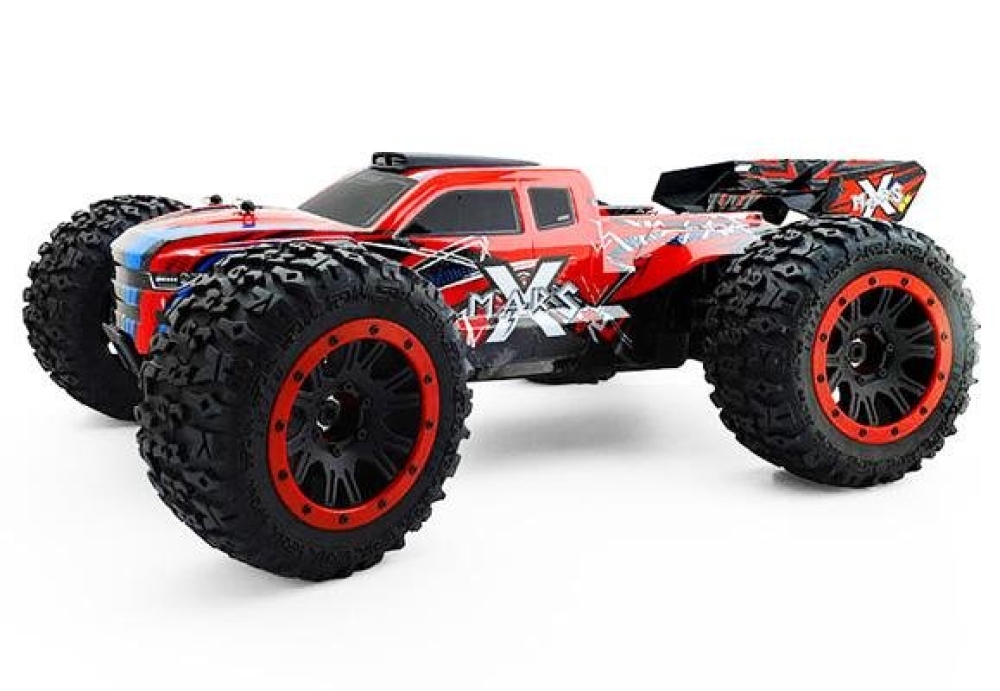 HNR MARS-X 4WD Brushless RTR - это полноприводная машинка-монстр с бесколлекторным двигателем 4074/2200Kv и регулятором скорости Hobbywing Max8. Масштаб модели - 1:8. Отличается хорошей проходимостью и отличной управляемостью. Шасси модульное, просто обслуживается и показывает отличные ходовые характеристики. Корпус модели сделан из ударопрочного сплава, легко и без повреждений проходит любые краш-тесты. Батарея в комплекте не идет, поддерживаются литиевые аккумуляторы 4S или 6S. Дизайн машинки яркий, спортивный и агрессивный, отлично детализирован, корпус изготавливается в двух цветах - красно-синем и желто-зеленом. Данная модель представлена в красном цвете с синими вставками.
