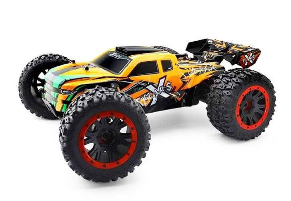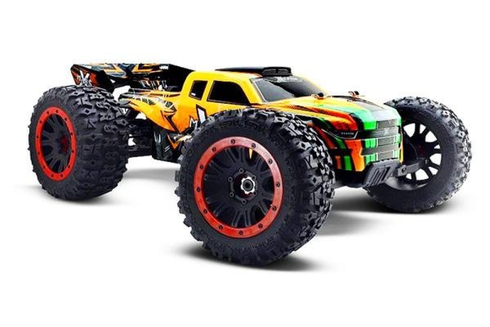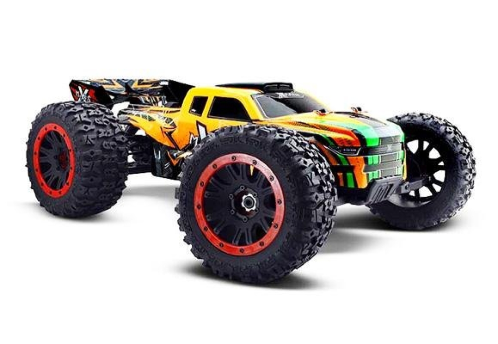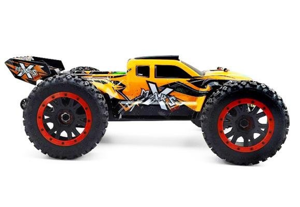 HNR MARS-X 4WD Brushless RTR - это полноприводная машинка-монстр с бесколлекторным двигателем 4074/2200Kv и регулятором скорости Hobbywing Max8. Масштаб модели - 1:8. Отличается хорошей проходимостью и отличной управляемостью. Шасси модульное, просто обслуживается и показывает отличные ходовые характеристики. Корпус модели сделан из ударопрочного сплава, легко и без повреждений проходит любые краш-тесты. Батарея в комплекте не идет, поддерживаются литиевые аккумуляторы 4S или 6S. Дизайн машинки яркий, спортивный и агрессивный, отлично детализирован, корпус изготавливается в двух цветах - красно-синем и желто-зеленом. Данная модель представлена в оранжевом цвете с ярко-зелеными вставками.