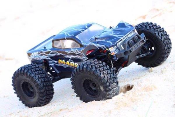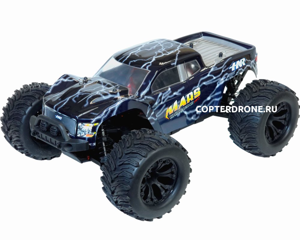 Масштаб 1:10, полный привод, мощный бесколлекторный мотор, влагозащита электроники. Скорость до 90-100 км/ч, дальность 200 м, время работы 30 минут.