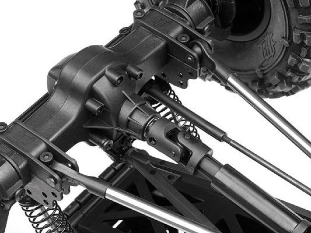 Мощный краулер от компании HPI с трубчатой конструкцией несущего шасси TVP, то придает машине прочности и легкости. Подвеска имеет длинный ход за счет металлических продольных рычагов с шарнирными креплениями, а также удлиненными амортизаторами с мягкими пружинами. За счет этого модель уверенно может преодолевать глубокие водные преграды или грязевые лужи, карабкаться по камням. Улучшенное сцепление достигается за счет фирменных покрышек HB Rover.