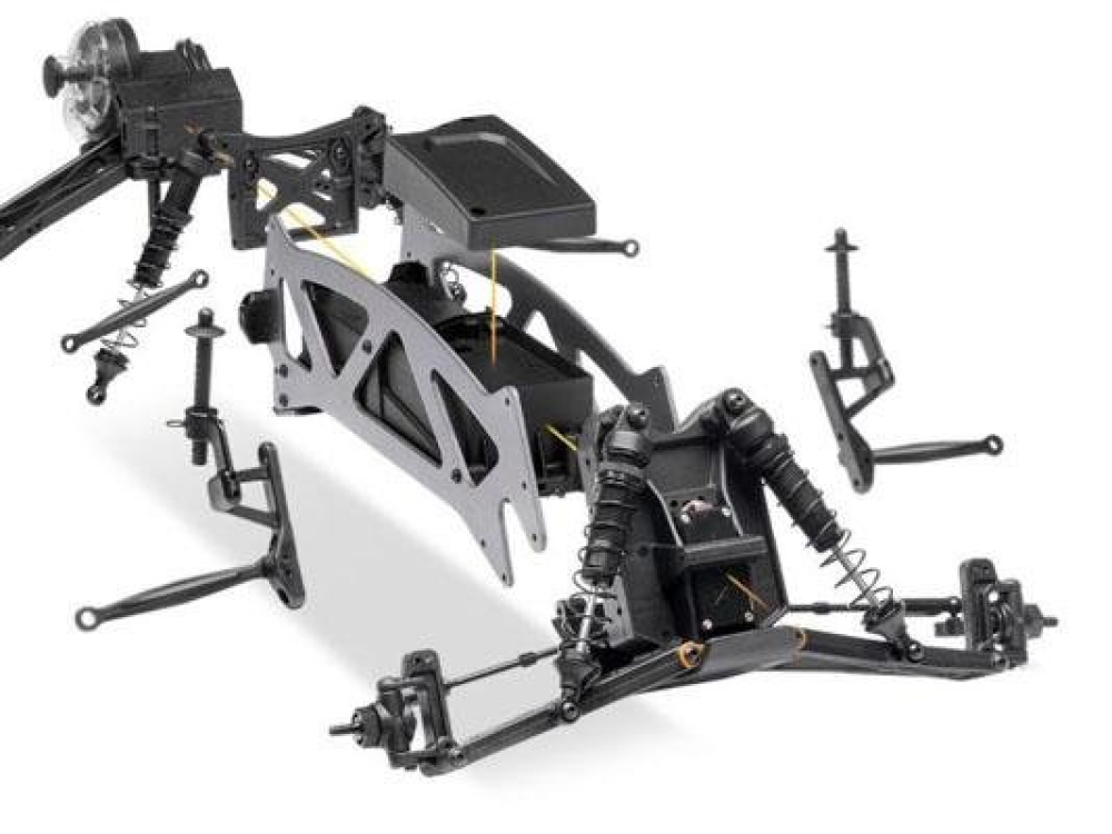Полноприводный монстр от HPI на фирменном популярном модульном шасси TVP. Оно состоит из 2-х продольных металлических пластин между которыми аккуратно расположена ходовая часть, электроника и аккумуляторная батарея. Проработанная развесовка позволит избежать переворотов при резком старте, несмотря на задний привод 2WD. Вся электроника имеет надежную влагозащиту электроники для езды в любое время года. Регулятор оборотов высокой мощности способен работать как на 2s, так и на 3s аккумуляторах. Трансмиссия имеет металлические шестерни, что существенно увеличит ресурс работы модели.